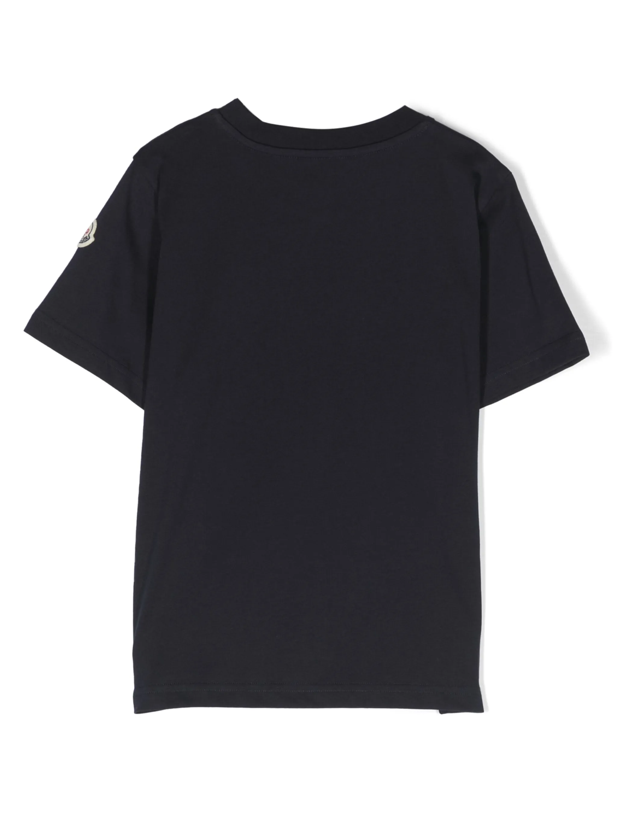 Темно-синий, хлопок, круглый вырез, короткие рукава, логотип спереди, нашивка с логотипом на рукаве и прямой подол.