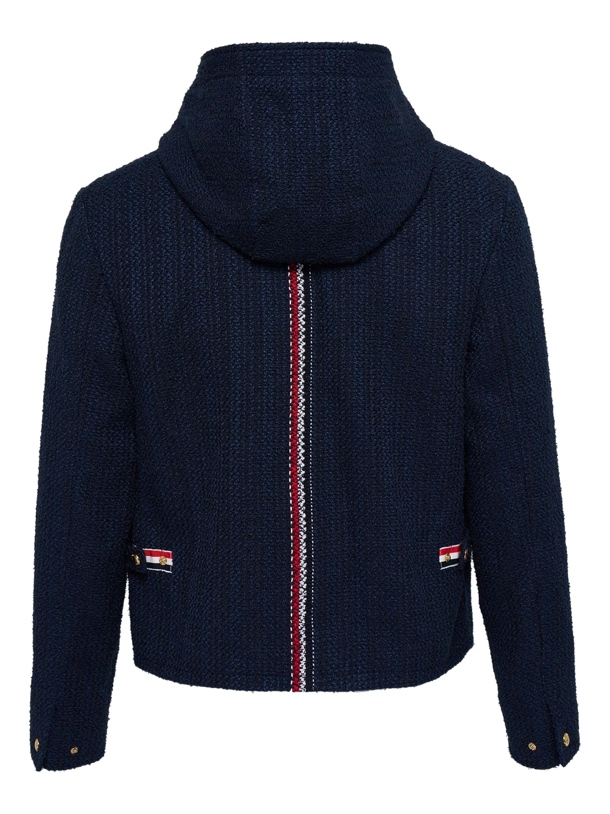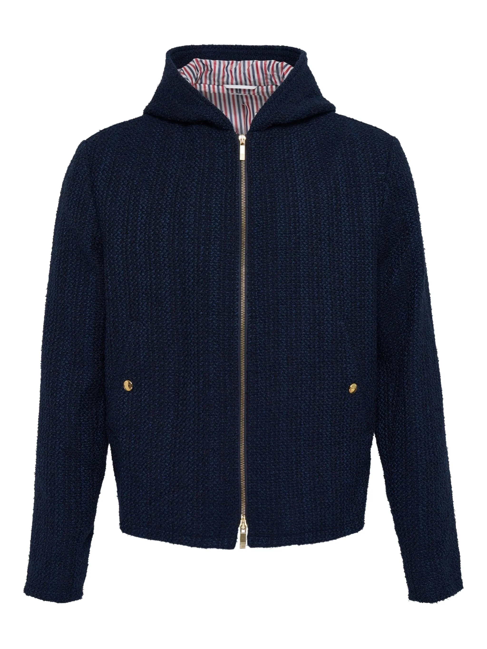 Темно-синий текстурная ткань застежка-молния, капюшон на пуговицах, карманы с клапанами подкладка в полоску