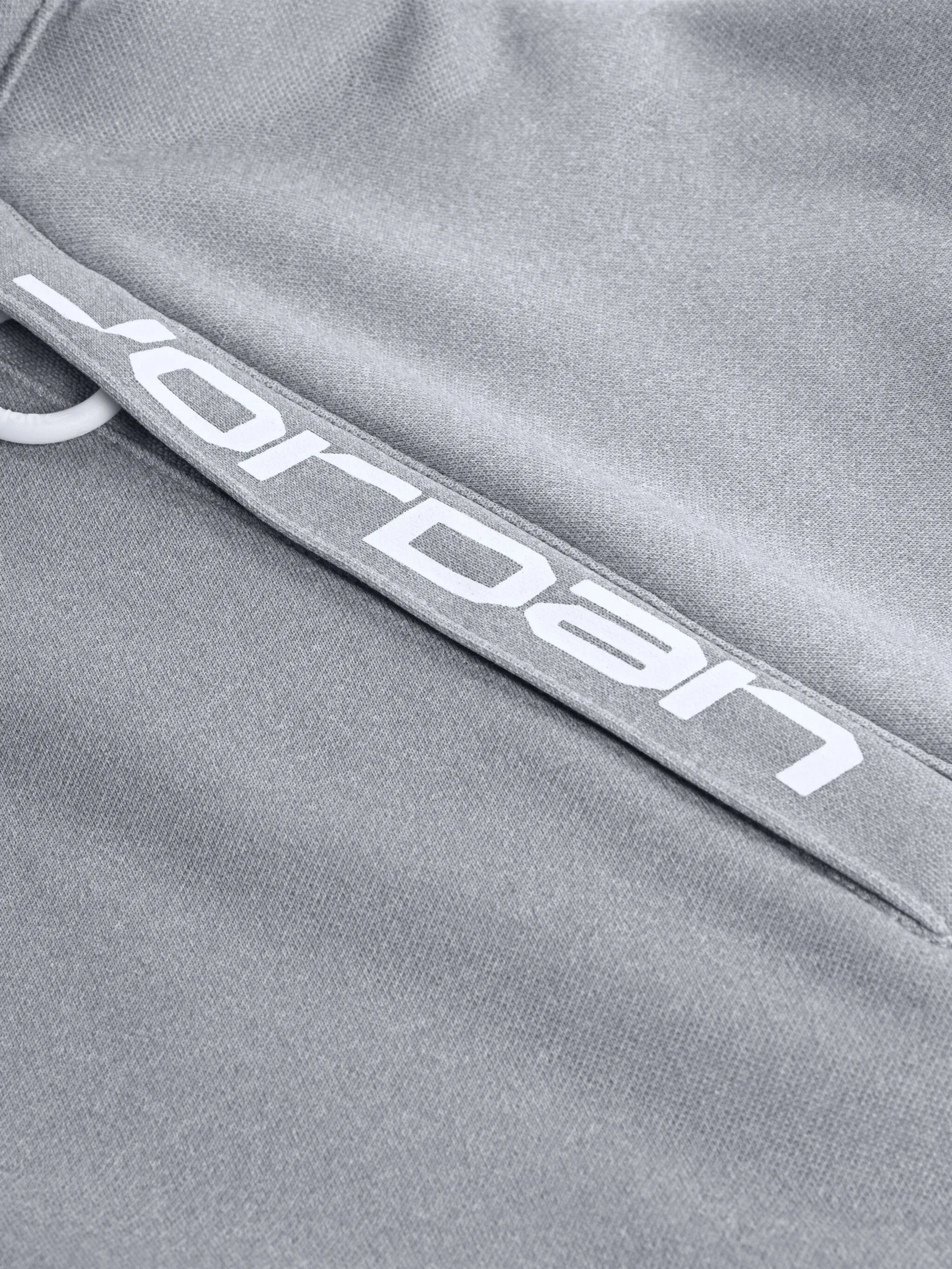 Передний карман-кенгуру с серым логотипом, длинные рукава с капюшоном, ребристый низ и манжеты