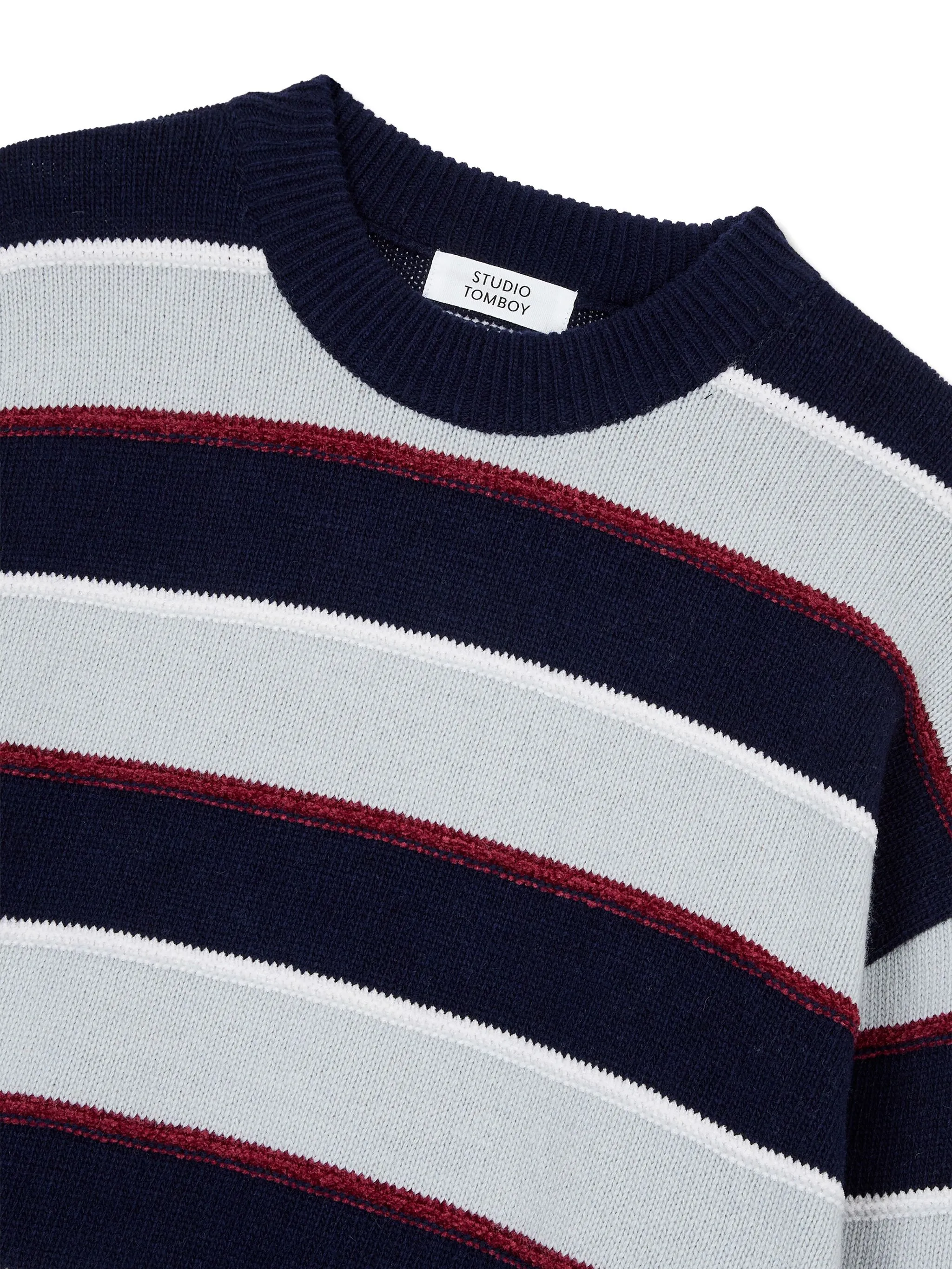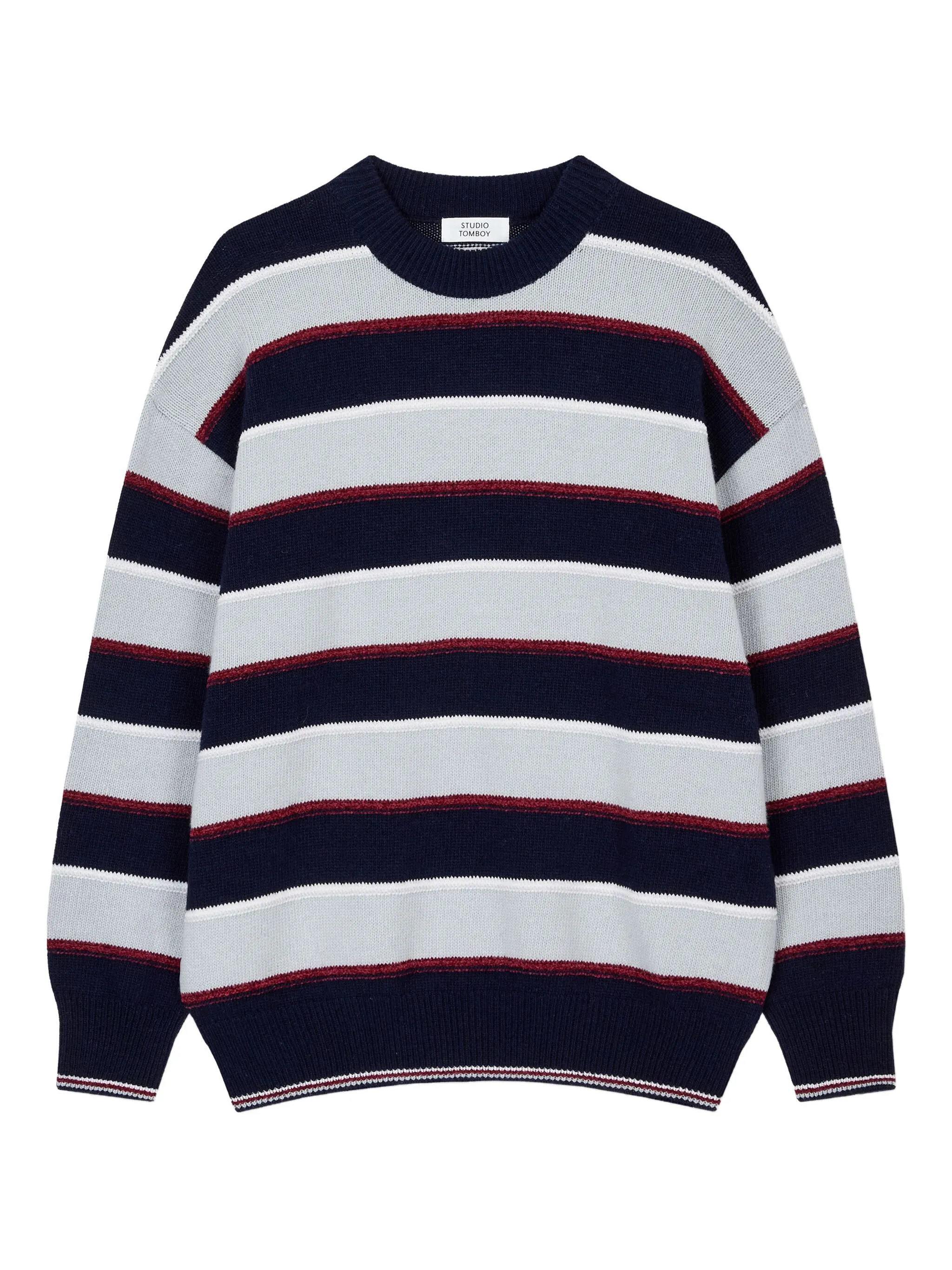 Полосатый свитер с круглым вырезом Studio Tomboy, синий