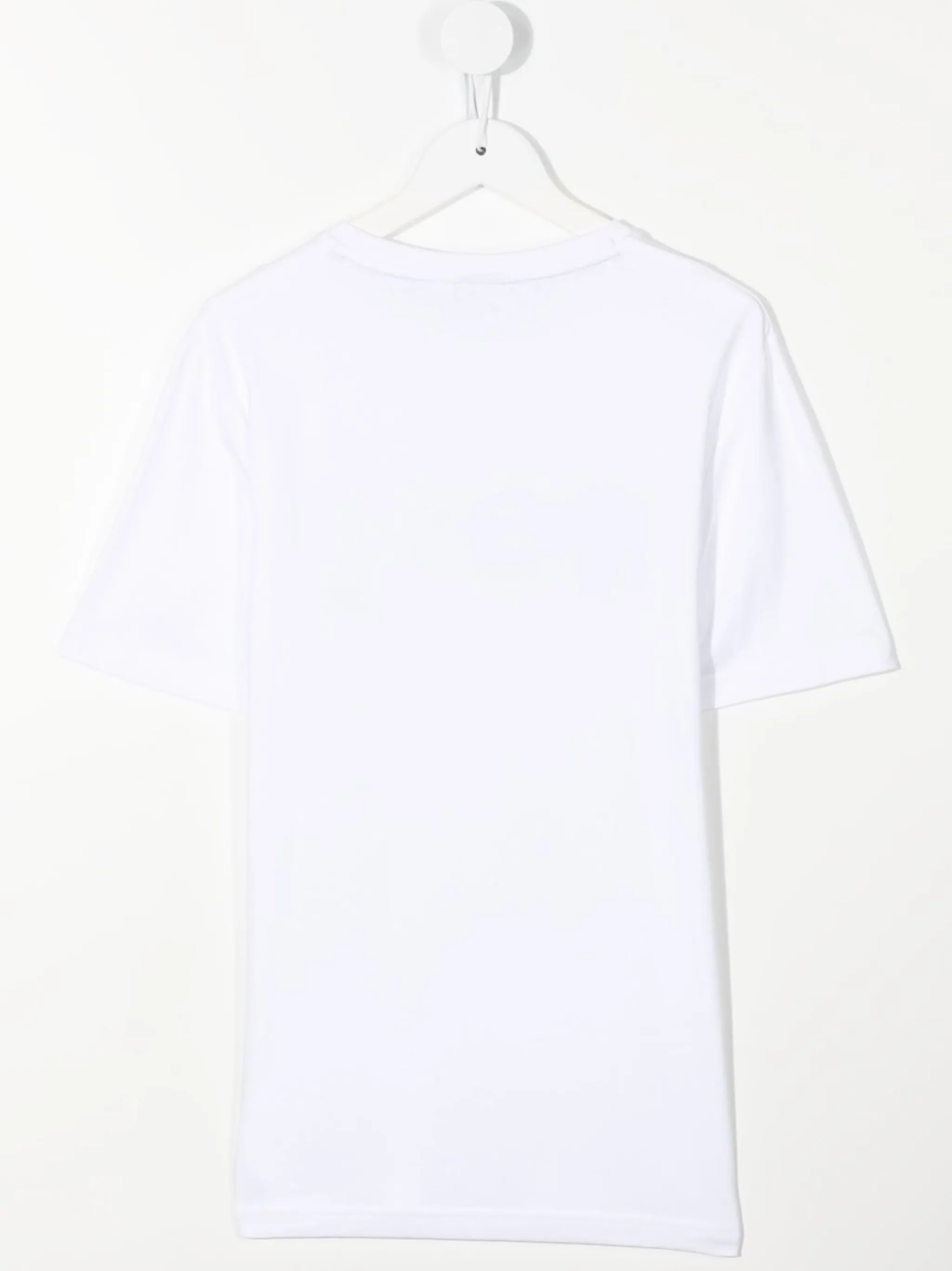 Ткань джерси, логотип спереди, круглый вырез, короткие рукава и прямой подол.