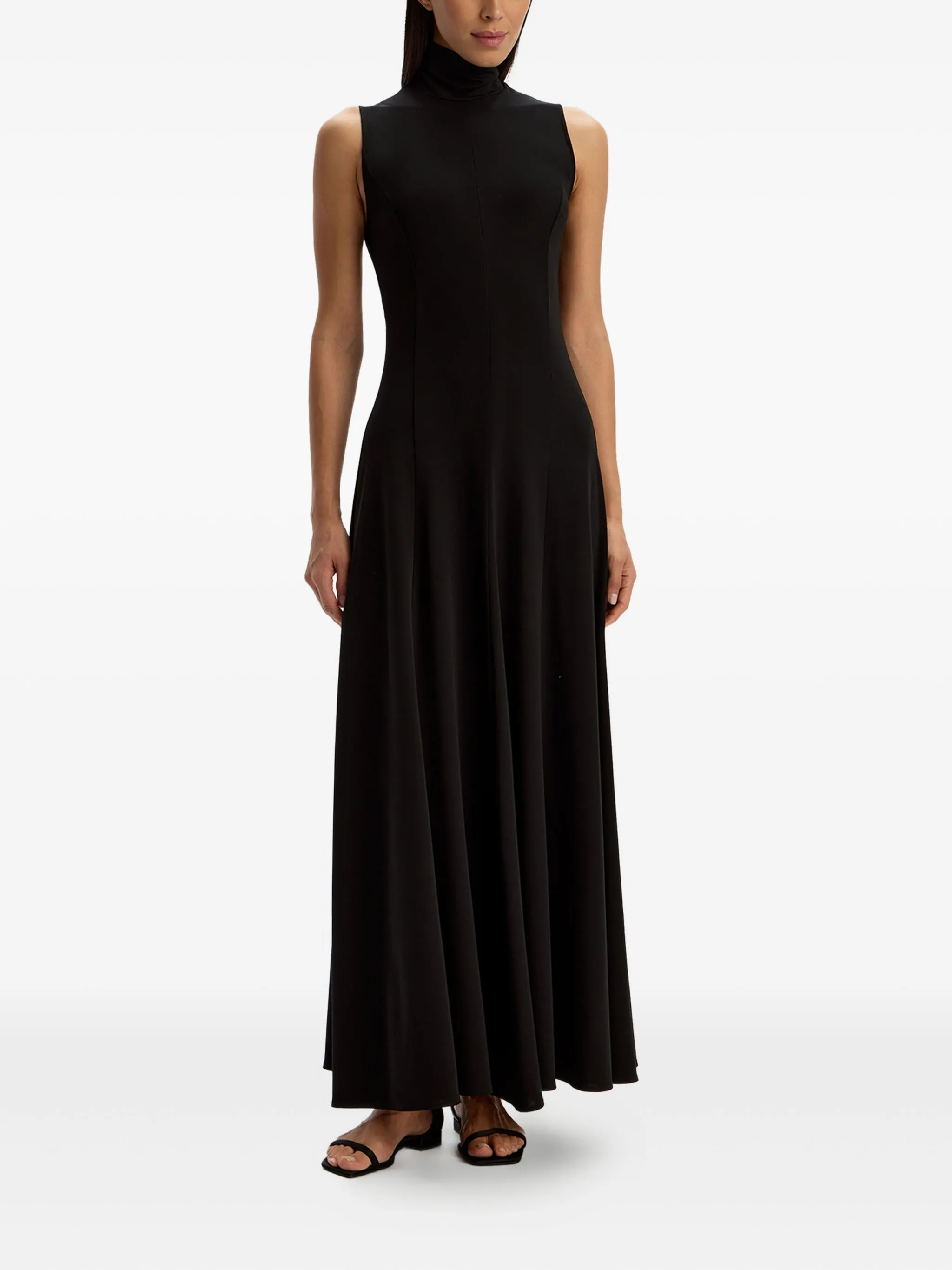 Черная водолазка без рукавов, макси-длины, с креповой текстурой