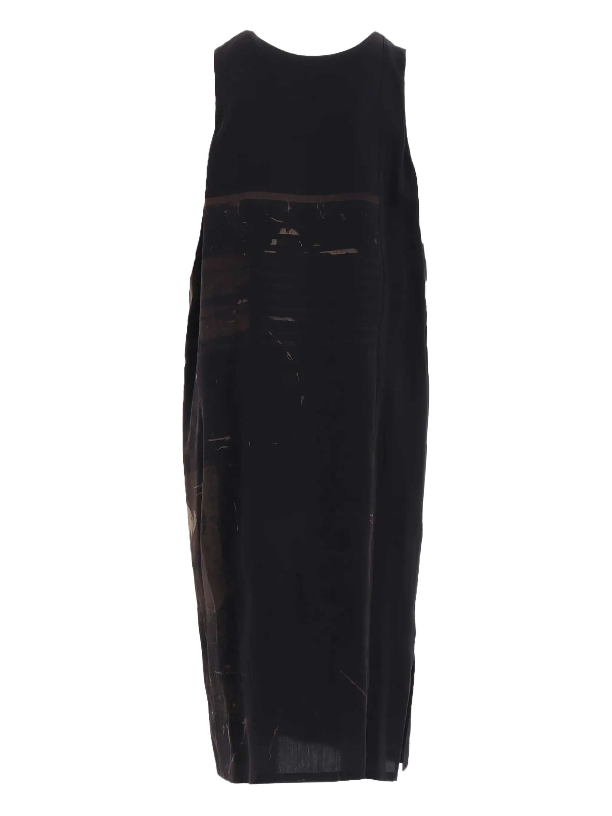 Черный, абстрактный принт, без рукавов, с круглым вырезом и разрезами по бокам