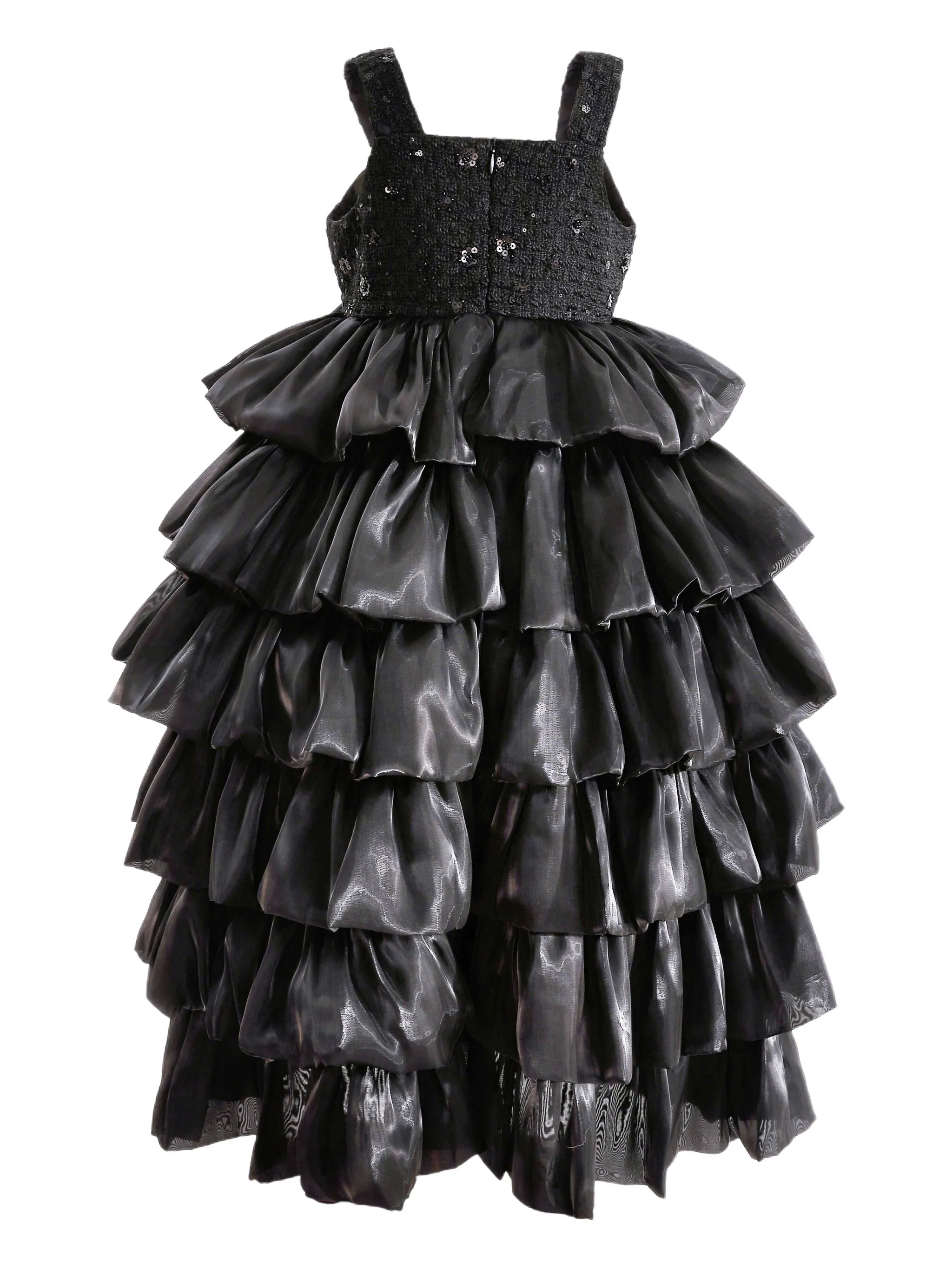 Украшение из черных блесток, многоуровневый дизайн с рюшами, без рукавов