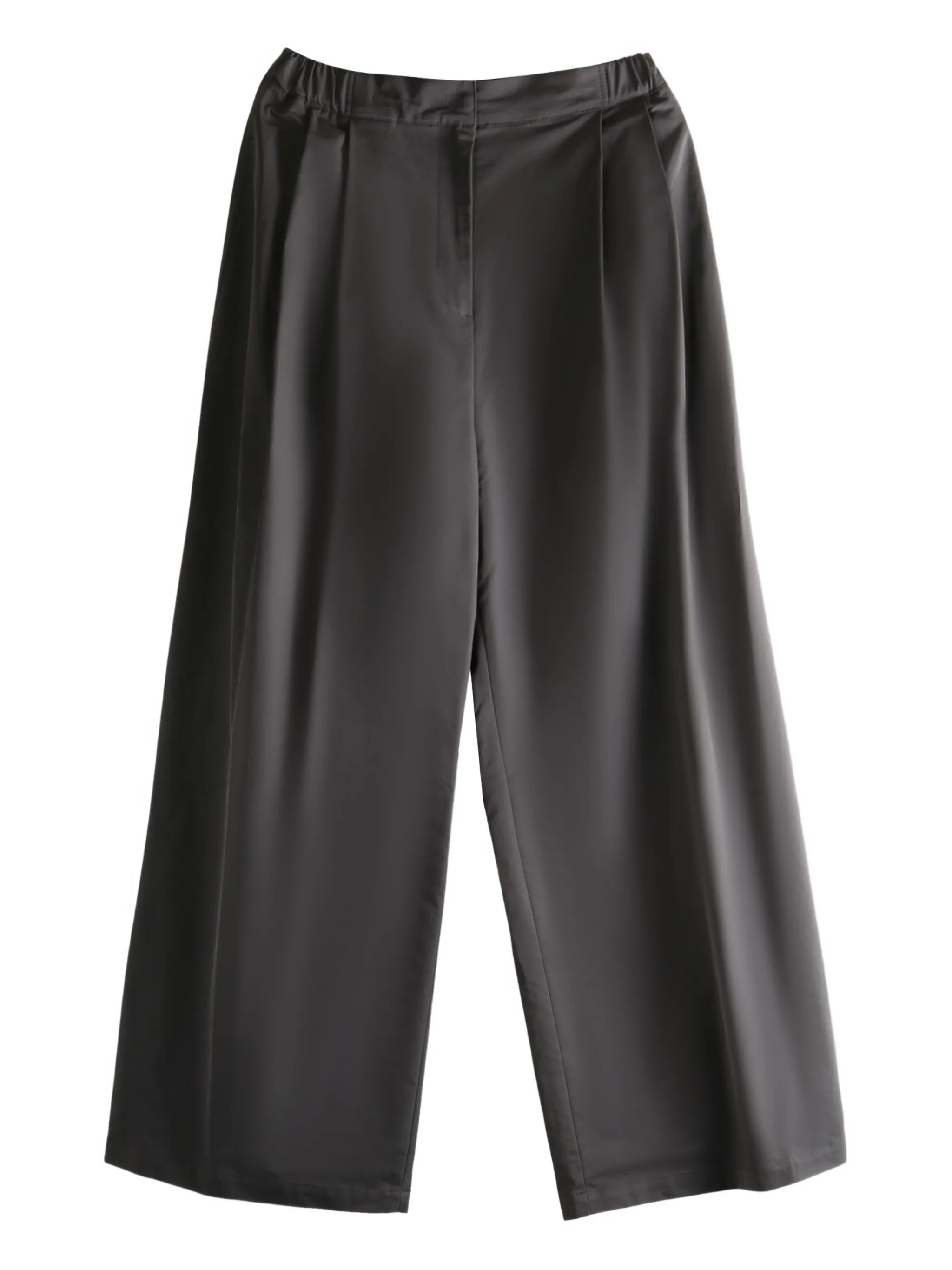 Эластичный пояс со складками цвета древесного угля, широкие штанины, задний прорезной карман, центральный шов