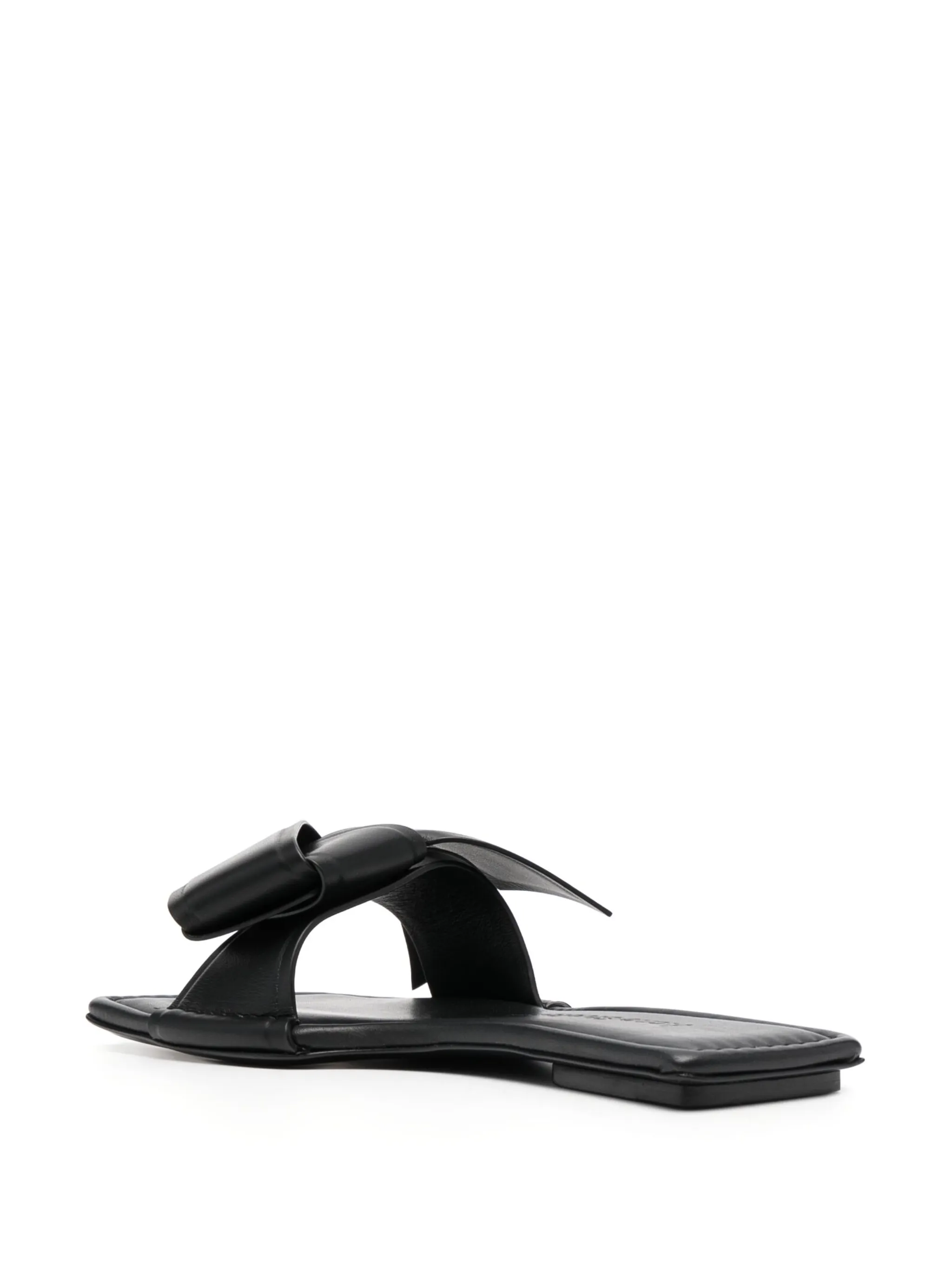 Черный, телячья кожа, бант, открытый носок, модель без застежки, логотип на стельке и плоская кожаная подошва.