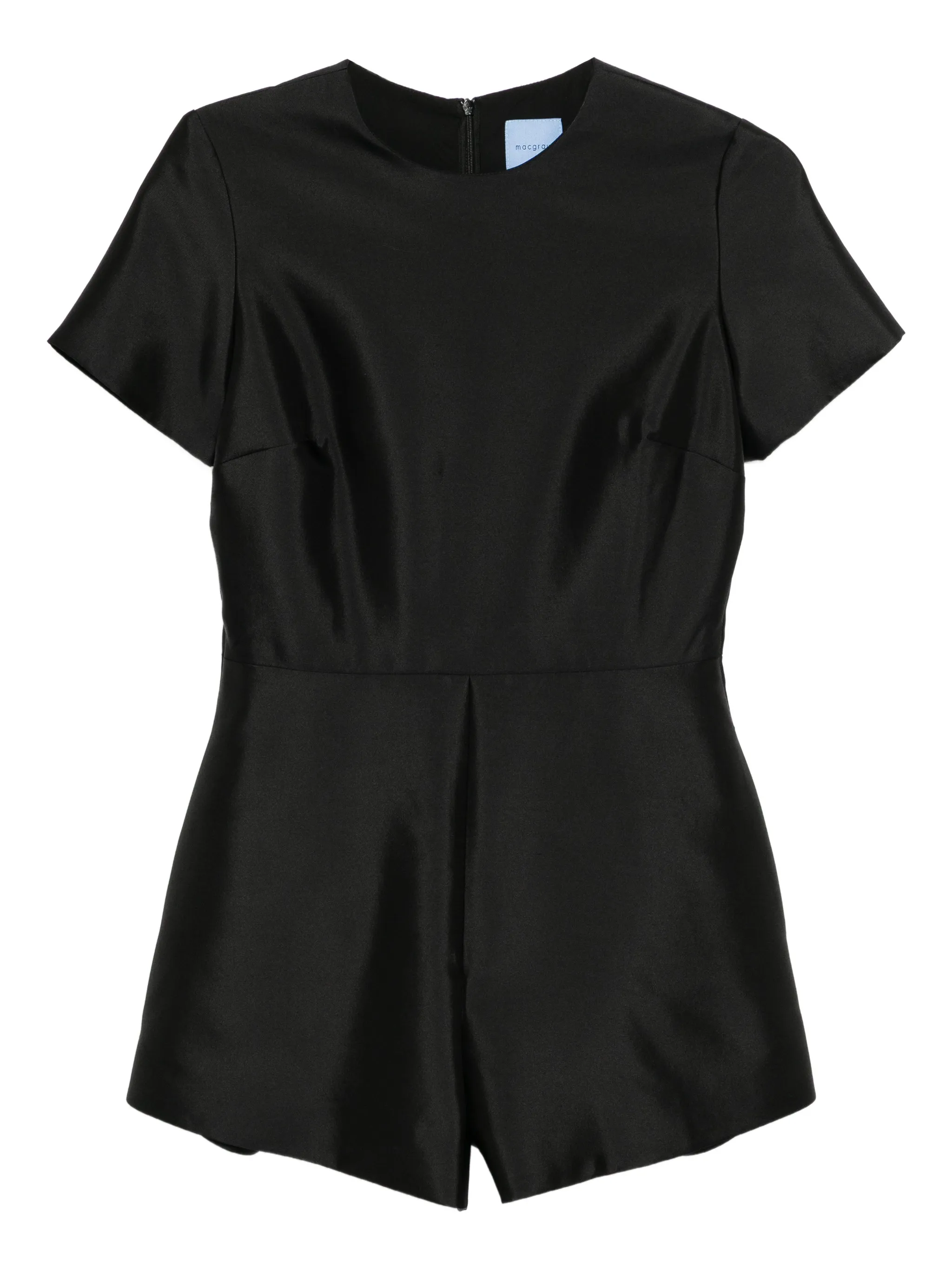 Черная потайная застежка-молния сзади, круглый вырез, короткие рукава, два боковых врезных кармана