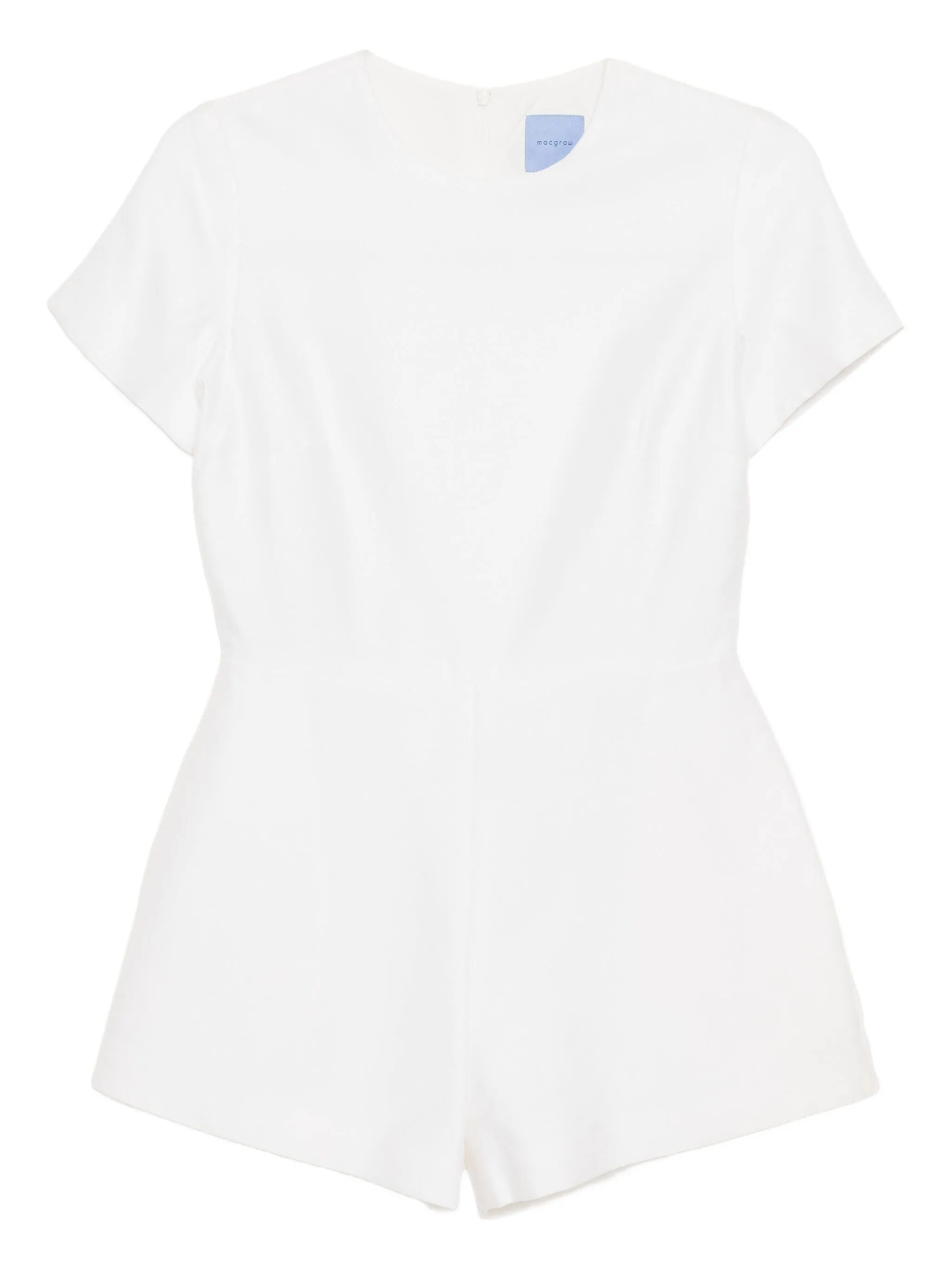 Белая, цвета слоновой кости, потайная застежка на молнию сзади, круглый вырез, два боковых врезных кармана, короткие рукава