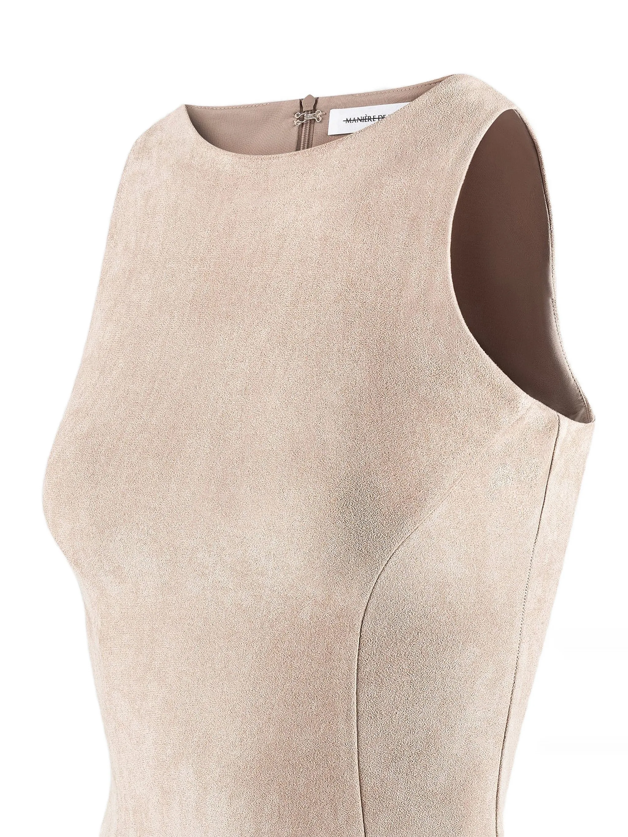 Светло-коричневая вышивка "Эйфелева звезда", застегивающаяся на невидимую молнию у горловины, служит напоминанием о том, что это изделие необходимо примерять поверх собственной одежды.