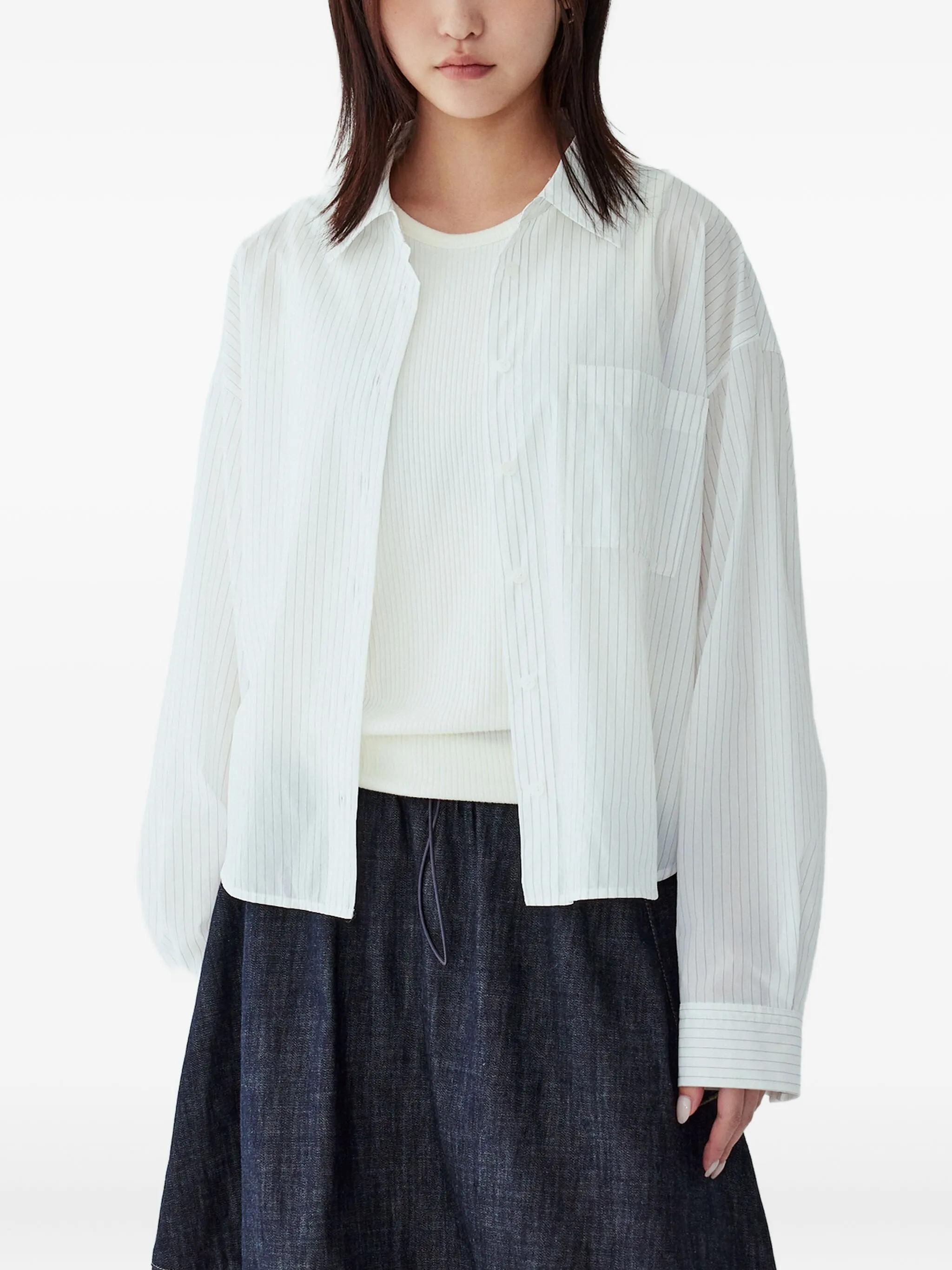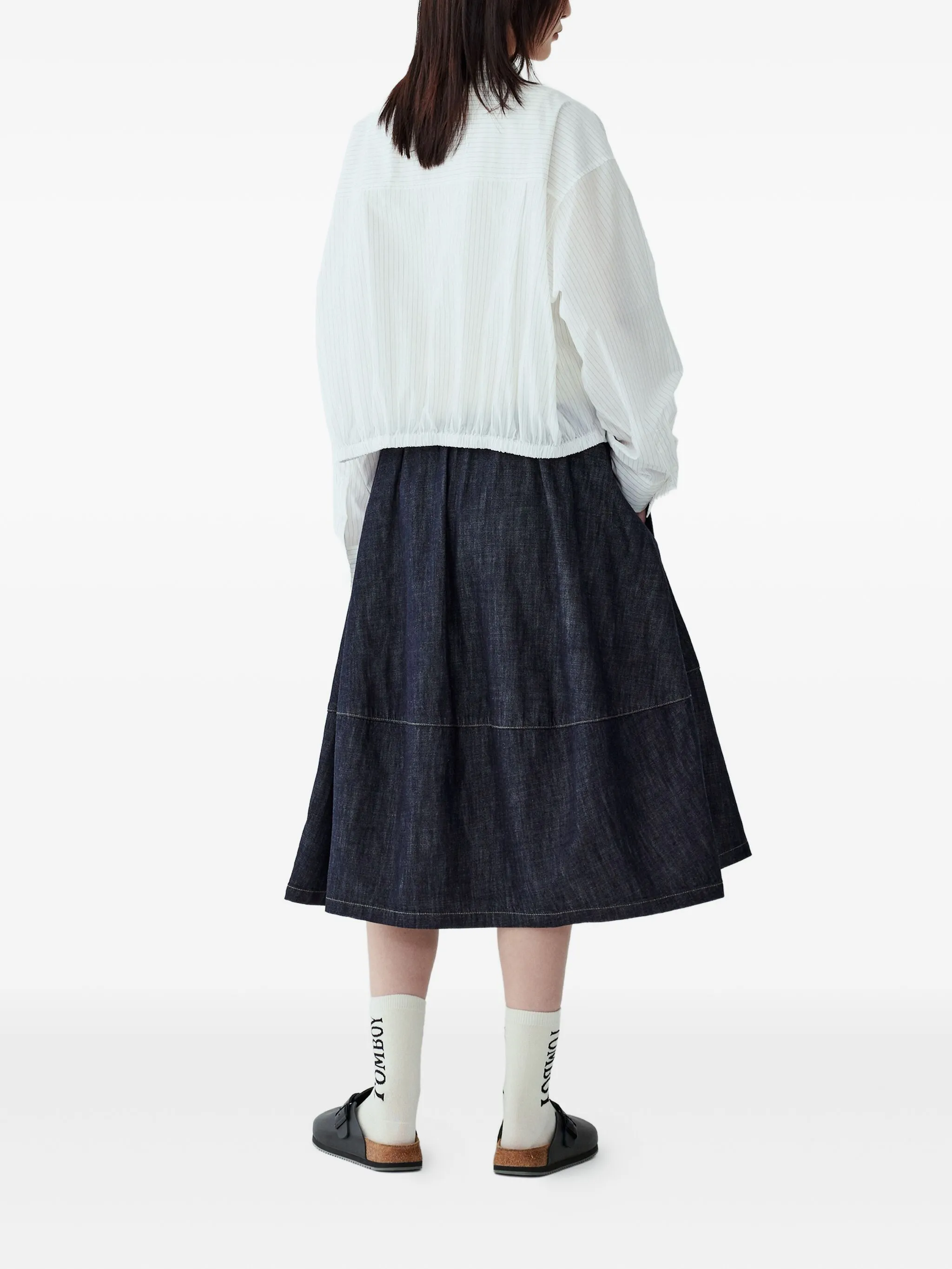 Полосатая рубашка с эластичным подолом Studio Tomboy, белый
