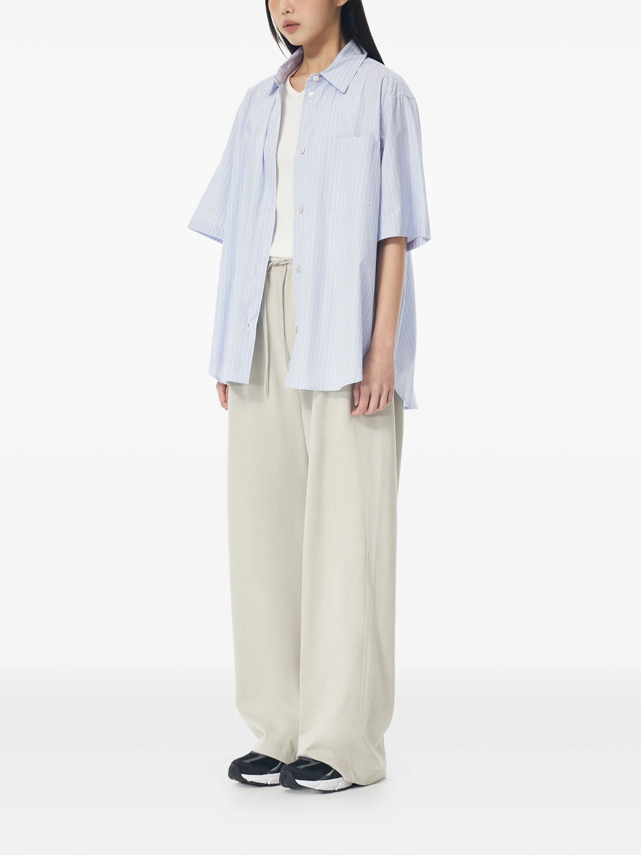 Полосатая рубашка с короткими рукавами Studio Tomboy, синий 37 379₽