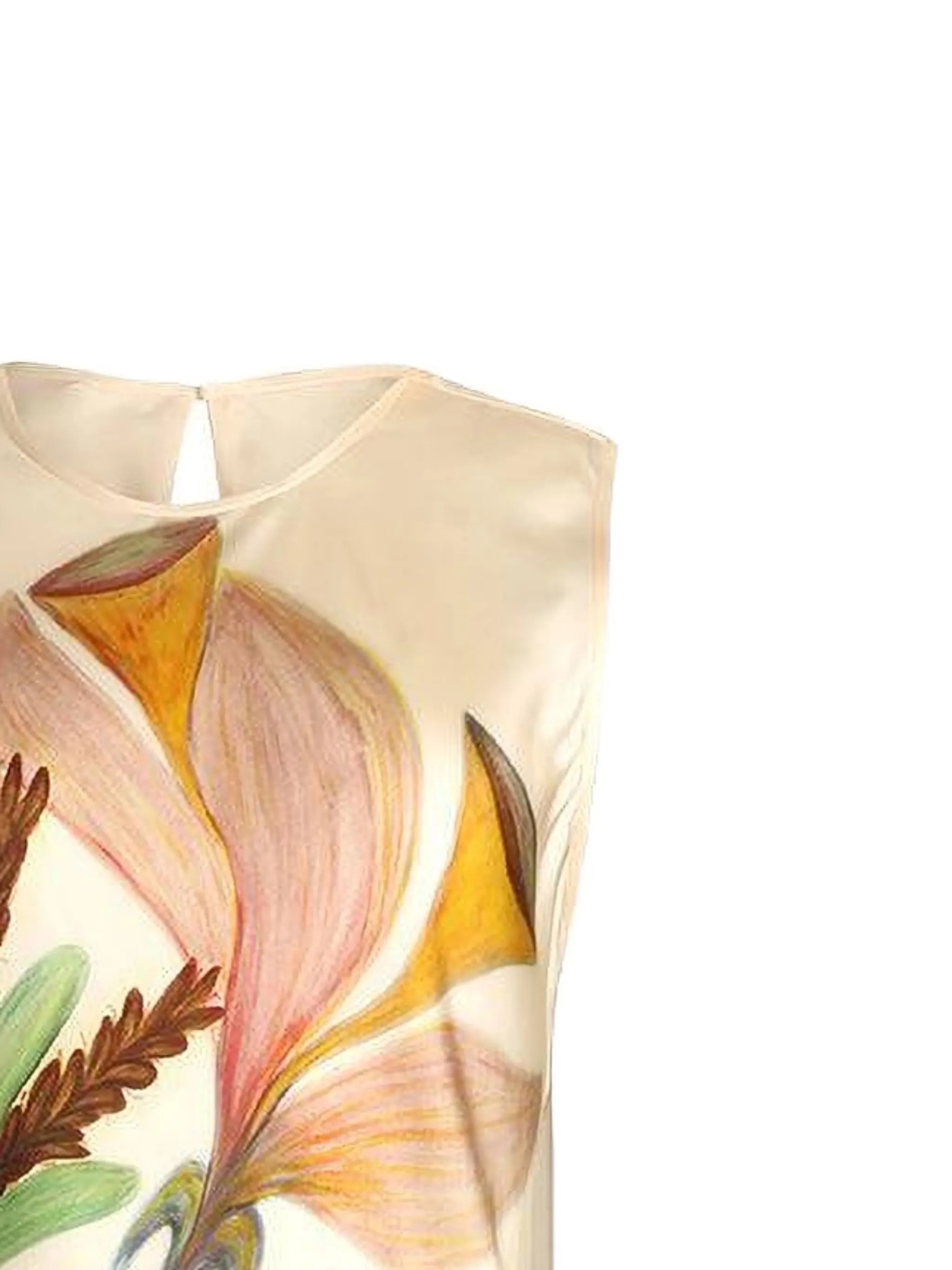 Кремовый цветочный принт, без рукавов, с круглым вырезом и замочной скважиной, длина миди