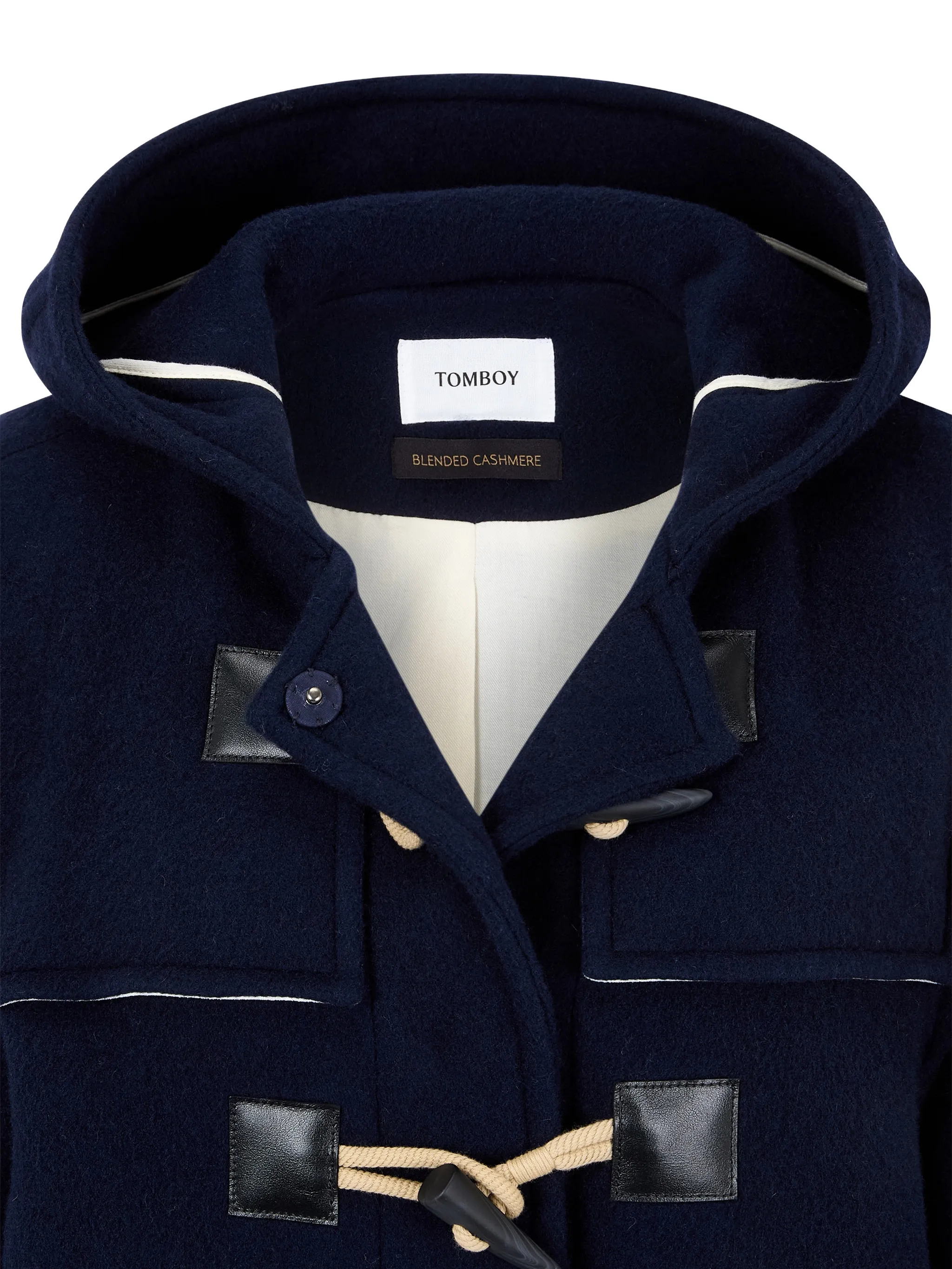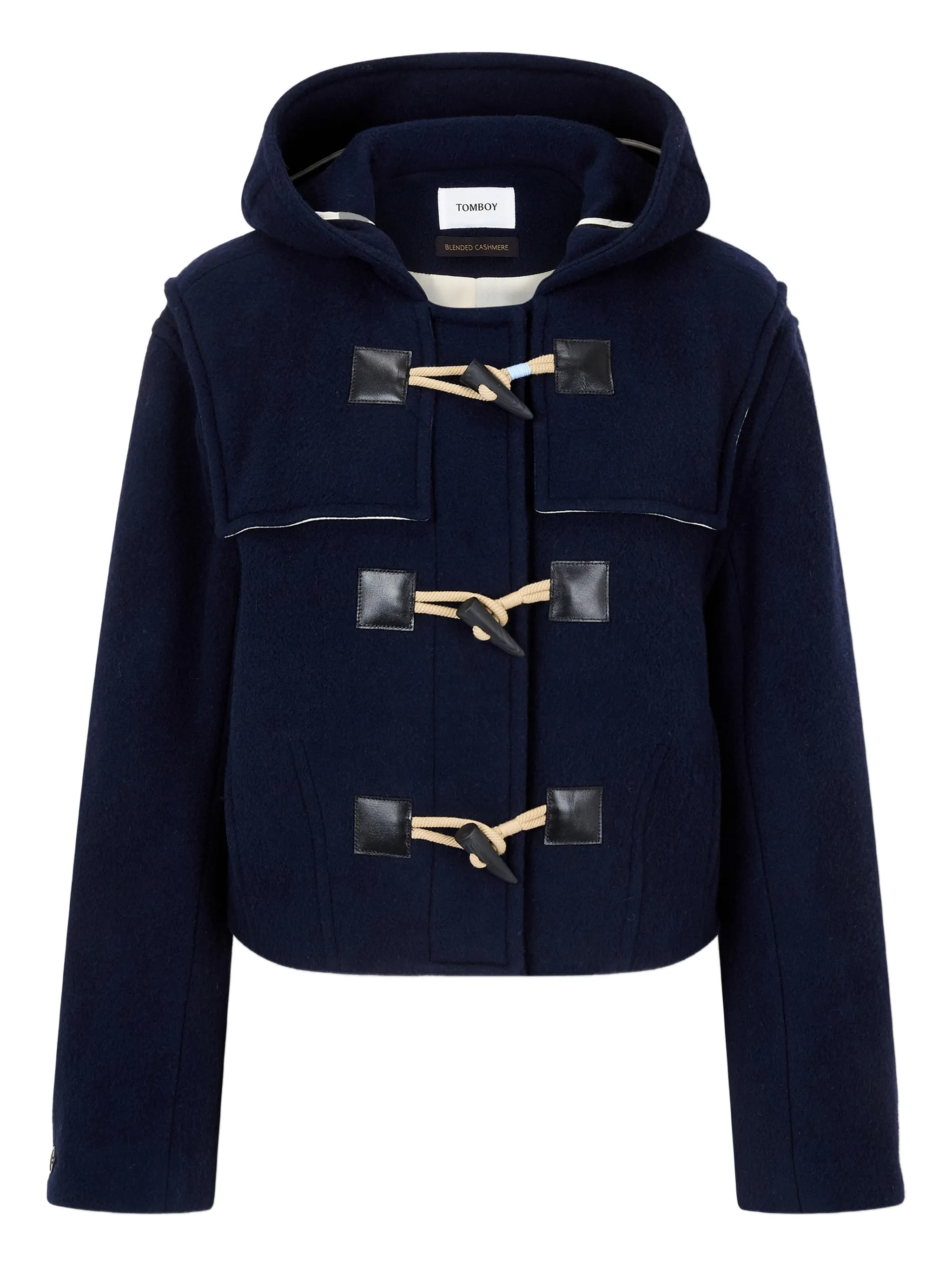 Темно-синий капюшон с тумблерной застежкой, манжеты на пуговицах, передние прорезные карманы, контрастная окантовка