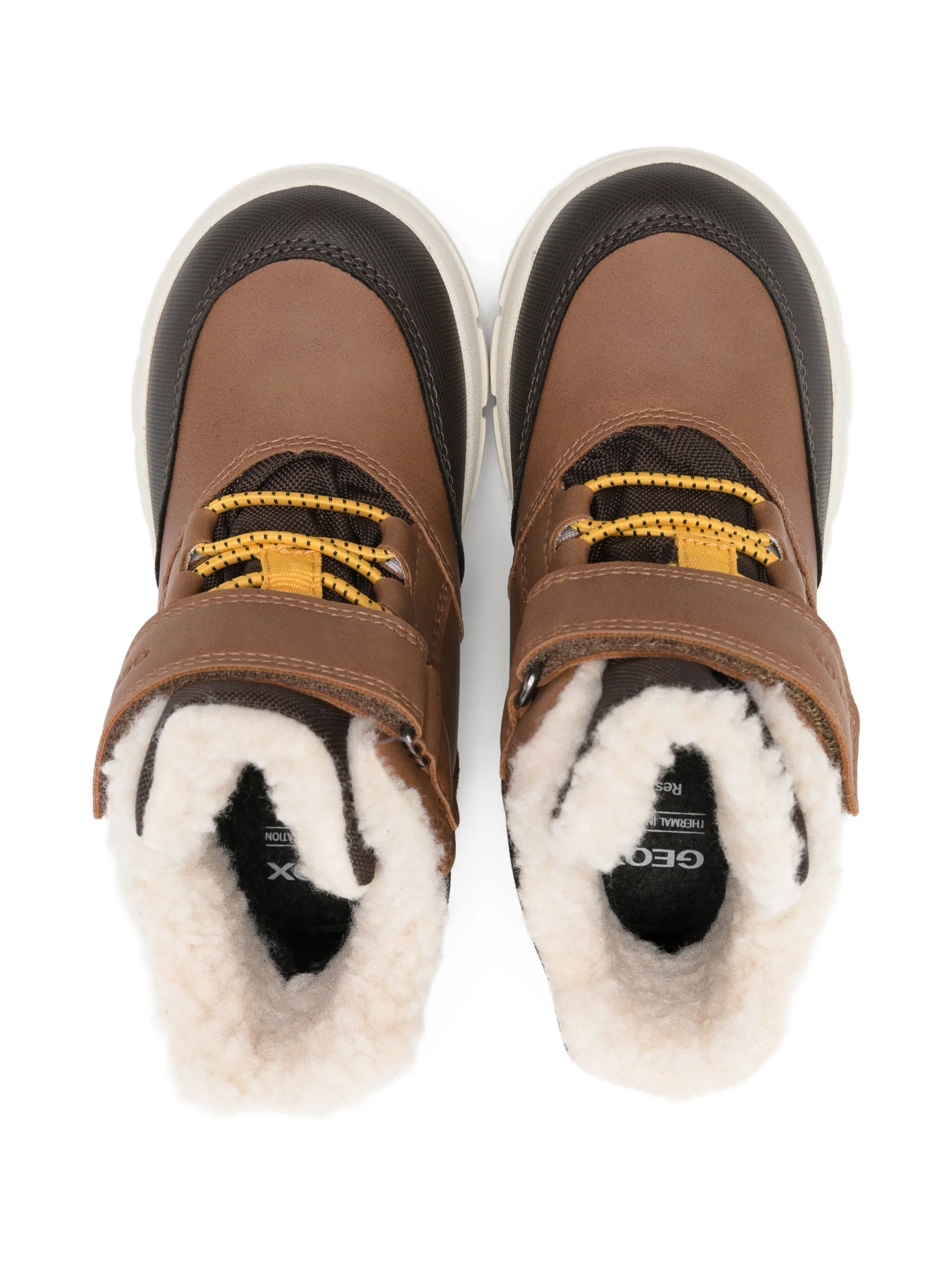 Табачный / темно-коричневый ремешок спереди поверх застежки на шнуровке, отделка из искусственного меха, рифленая подошва с логотипом