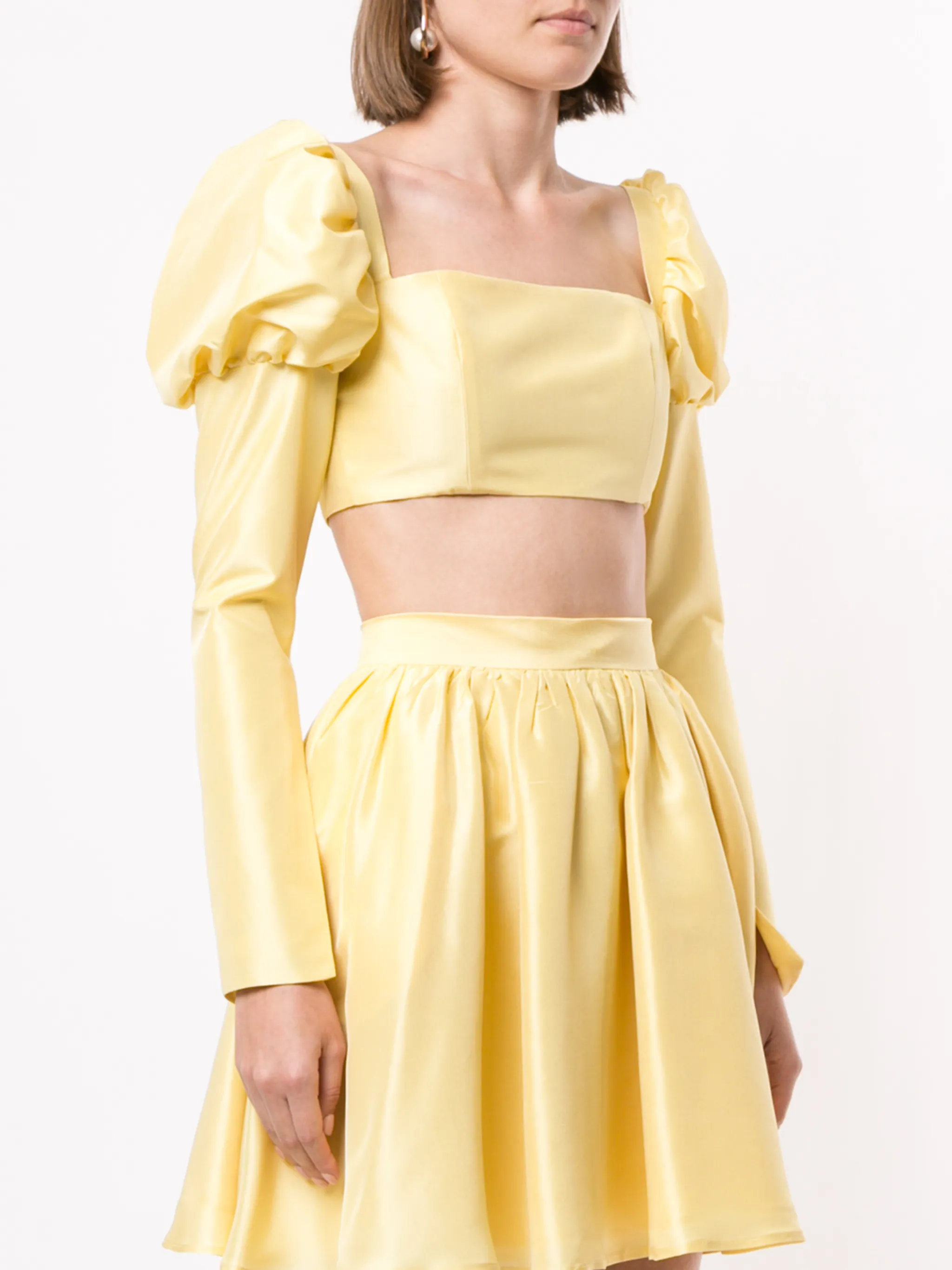 Укороченная блузка Canary от McGraw (МакГроу). Квадратный вырез, длинные рукава, застежка на молнии сзади и укороченная длина. Цвет: желтый.