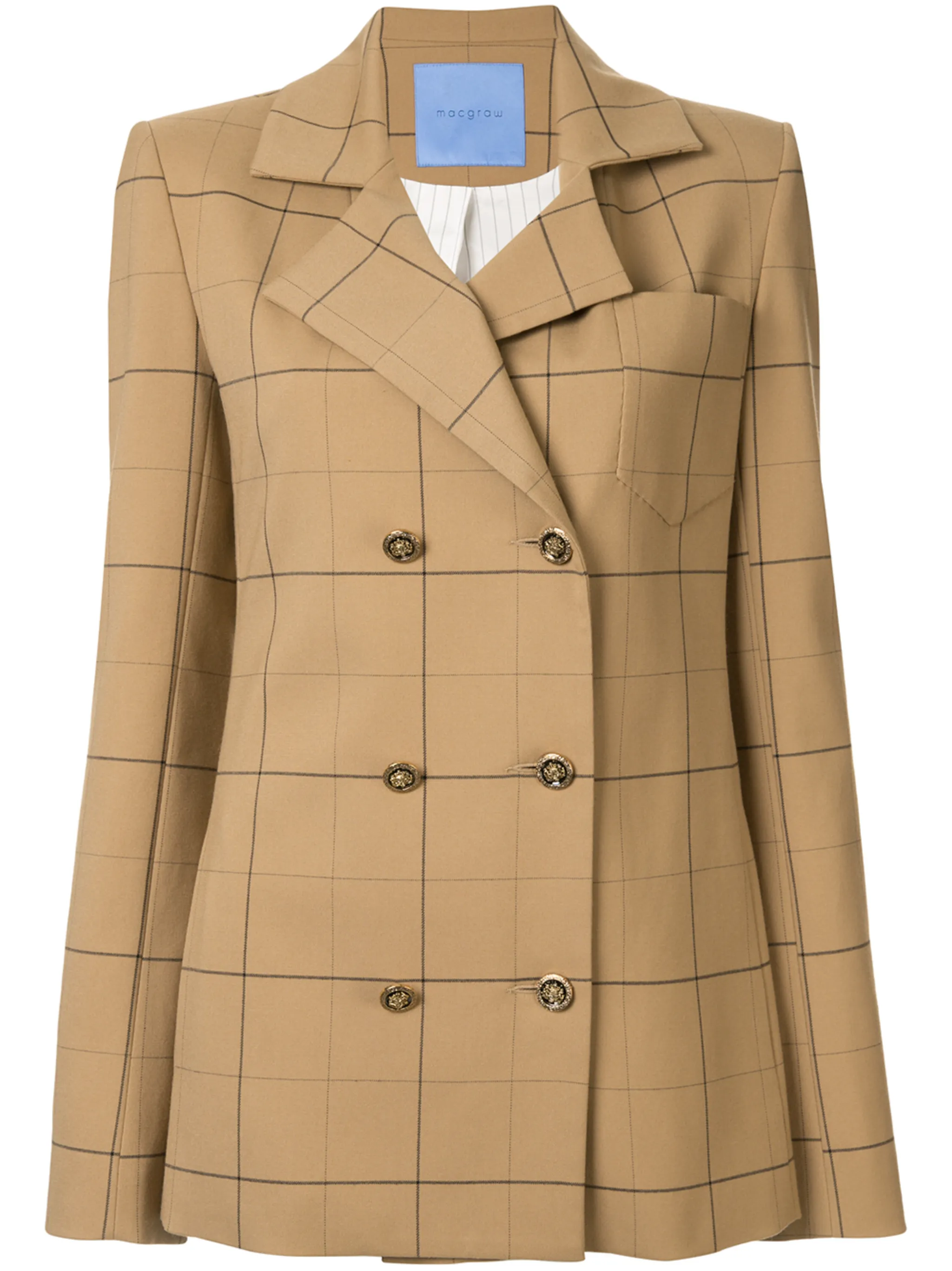 Блейзер Genius от McGraw (МакГроу). Классические лацканы, двубортный фасон, нагрудный карман, длинные рукава, прямой подол и шлица сзади.