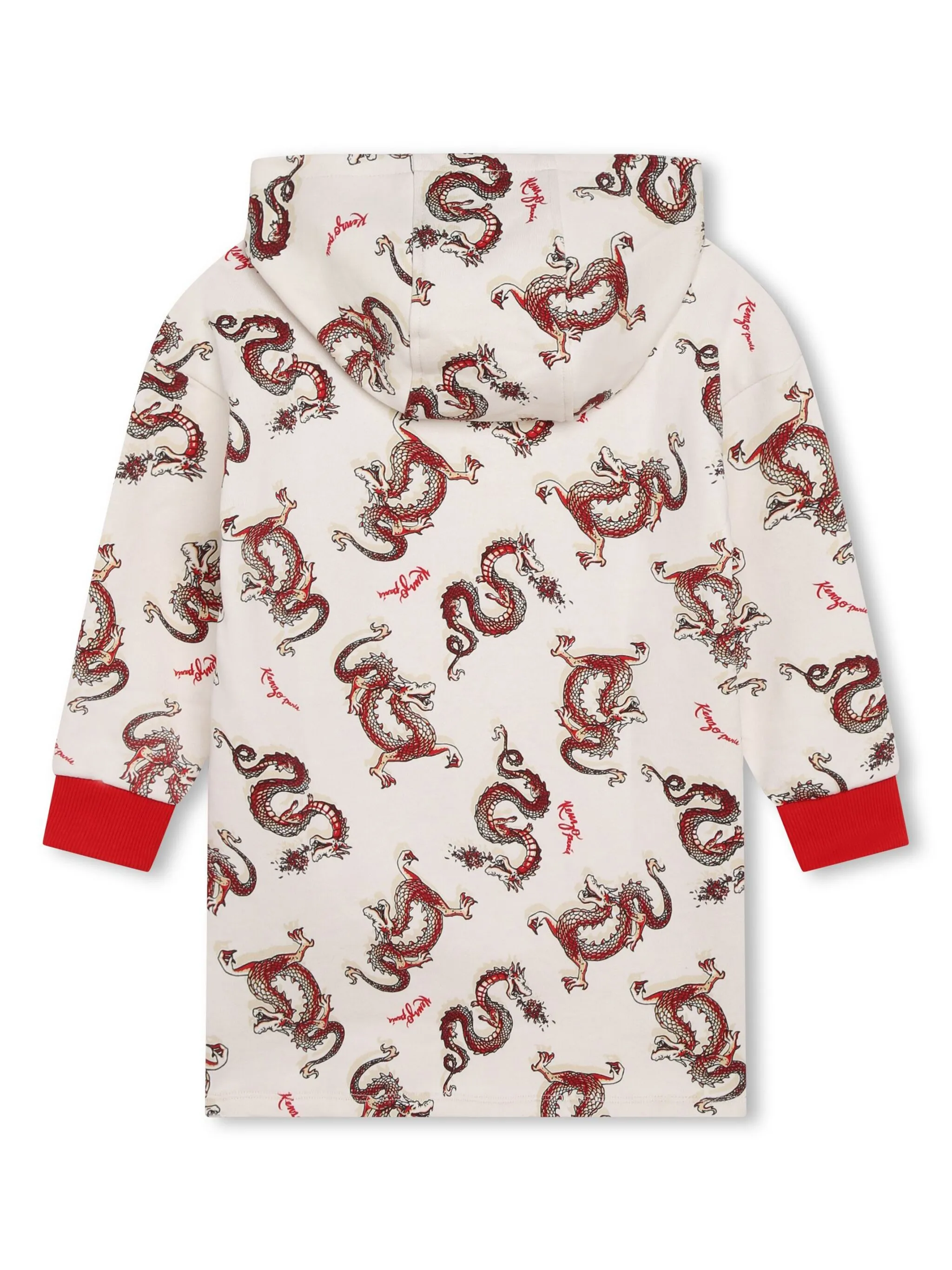Цвет слоновой кости, красный, хлопок, принт с изображением дракона, классический капюшон, длинные рукава и прямой подол.