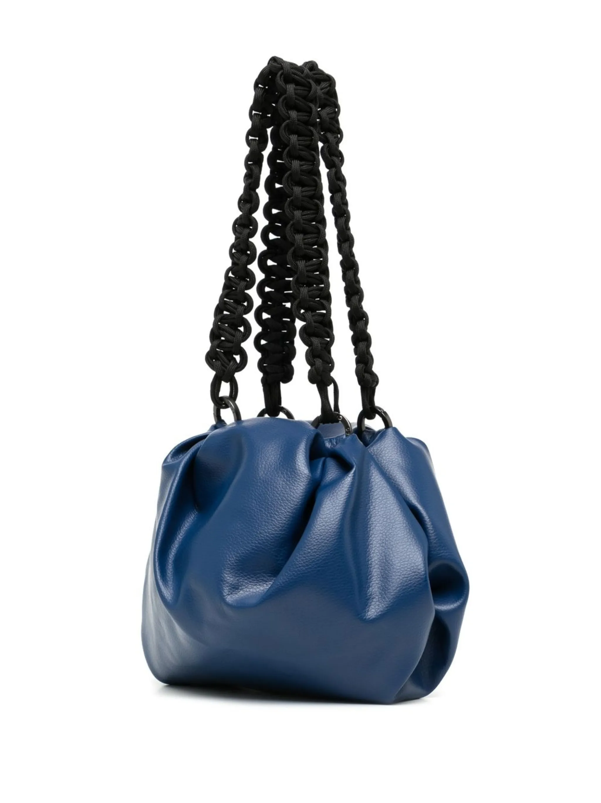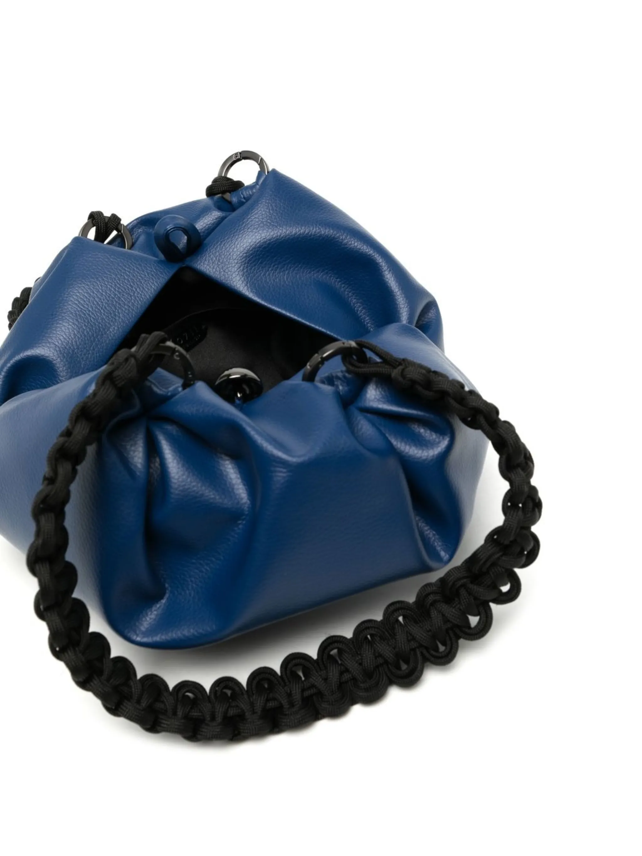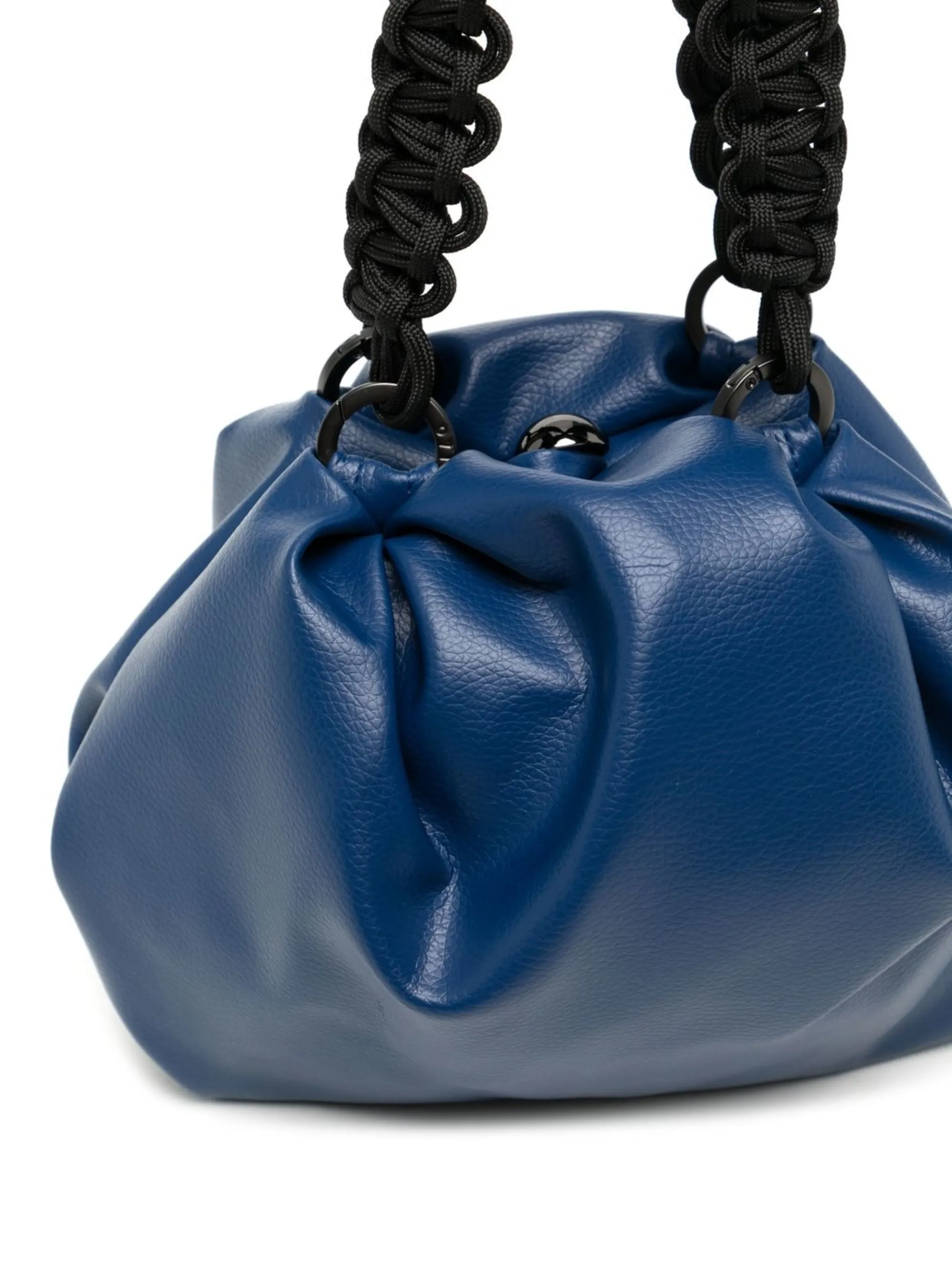 Кобальтово-синий, искусственная кожа, дизайн со сборками, плетеные ручки и основное отделение.