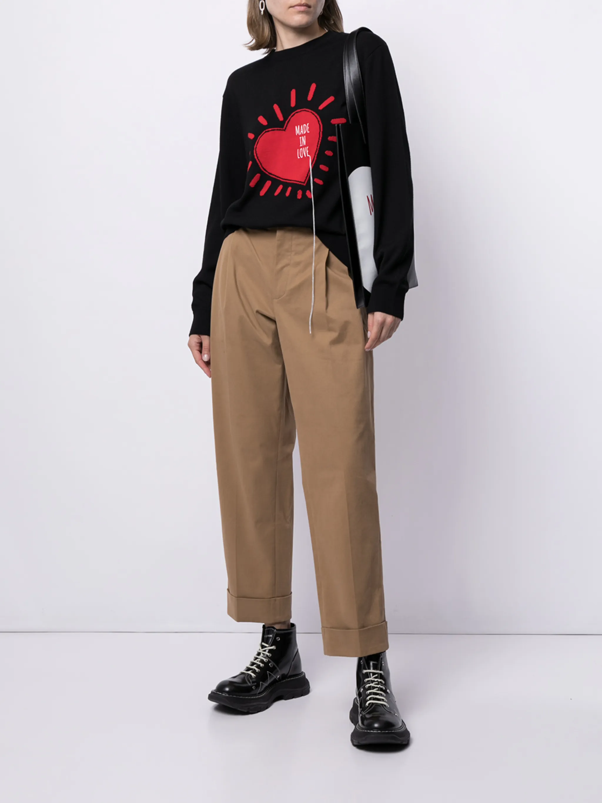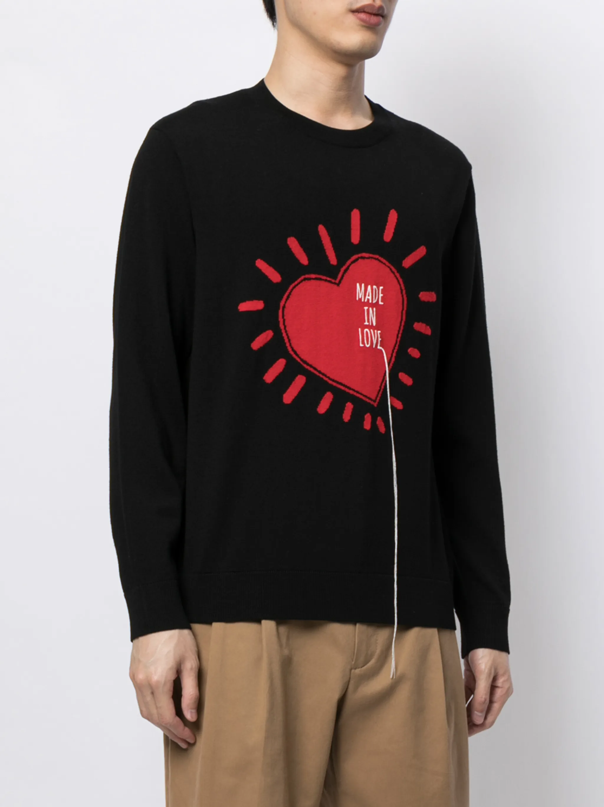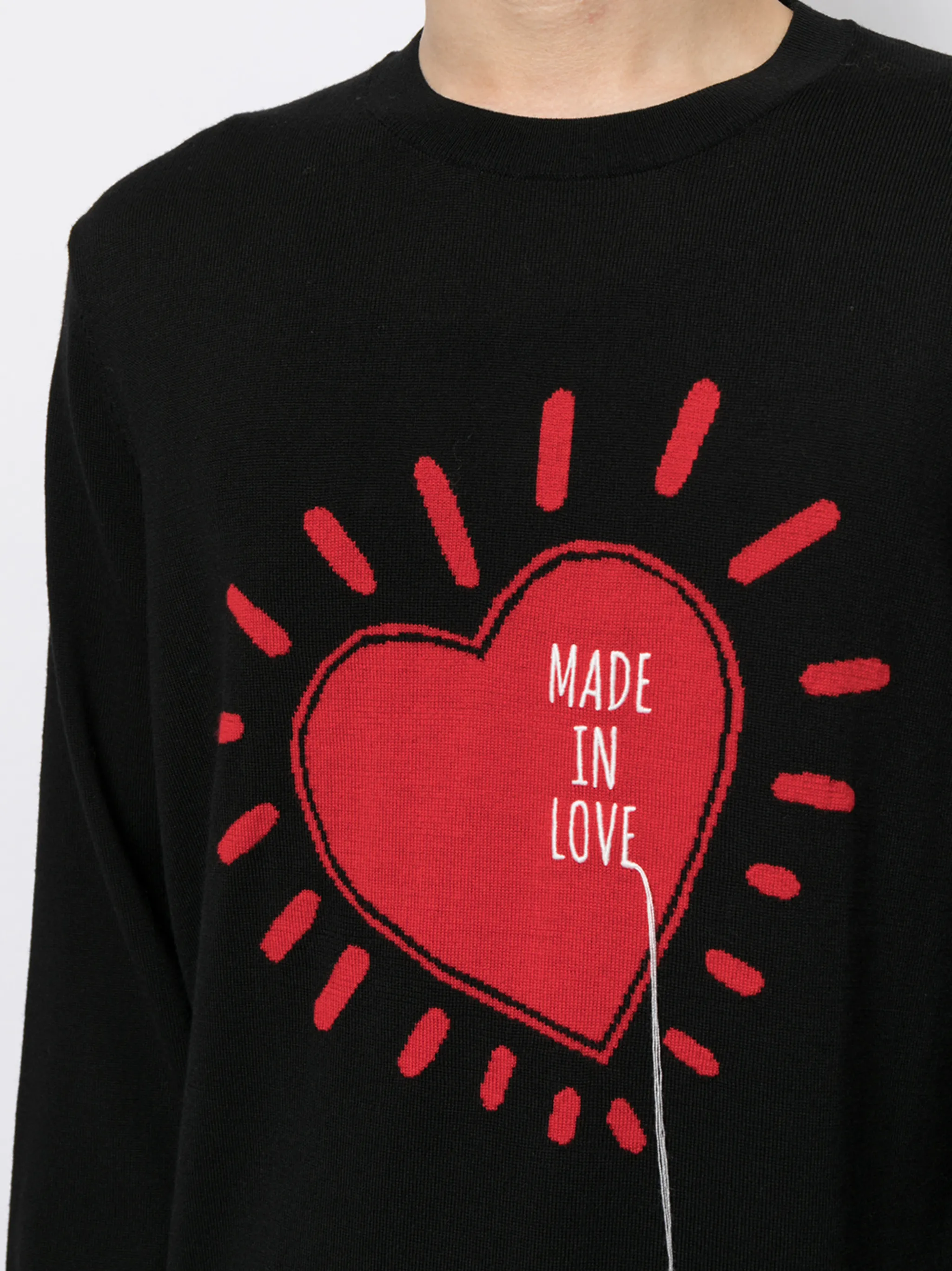 Принт с изображением сердца, круглый вырез, длинные рукава и прямой подол. Цвет: черный.