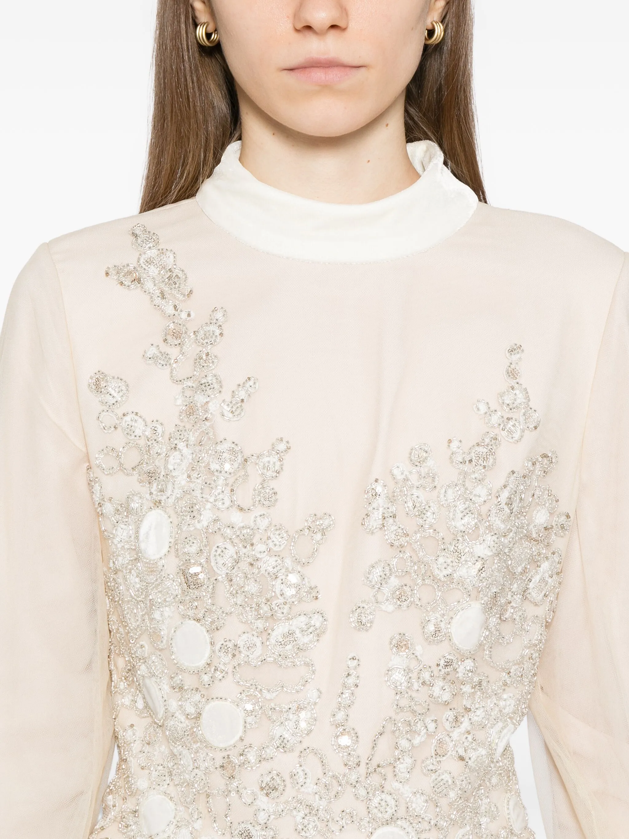 Платье с вышивкой Saiid Kobeisy, бежевый