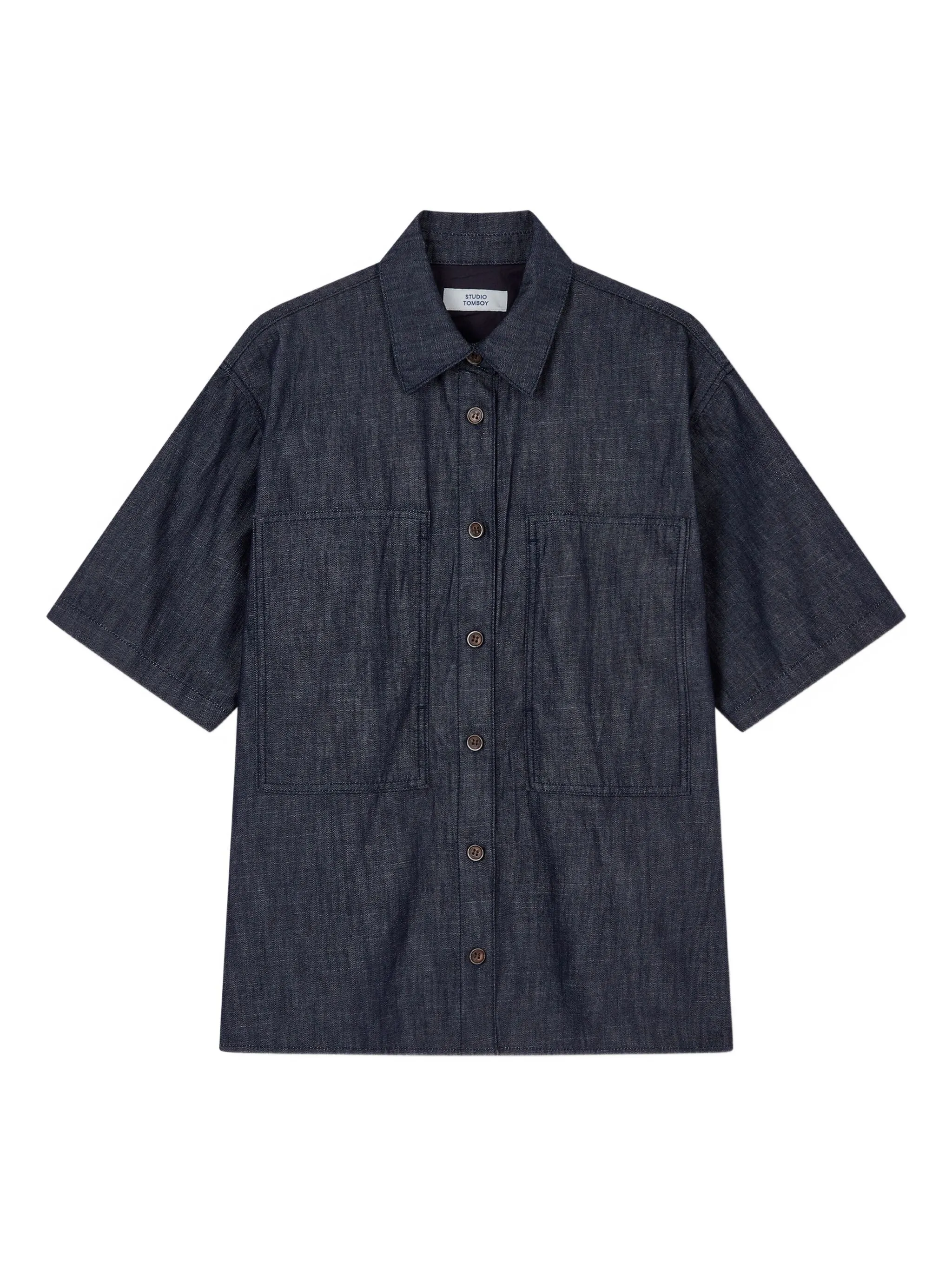 Джинсовая рубашка с накладными карманами Studio Tomboy, синий