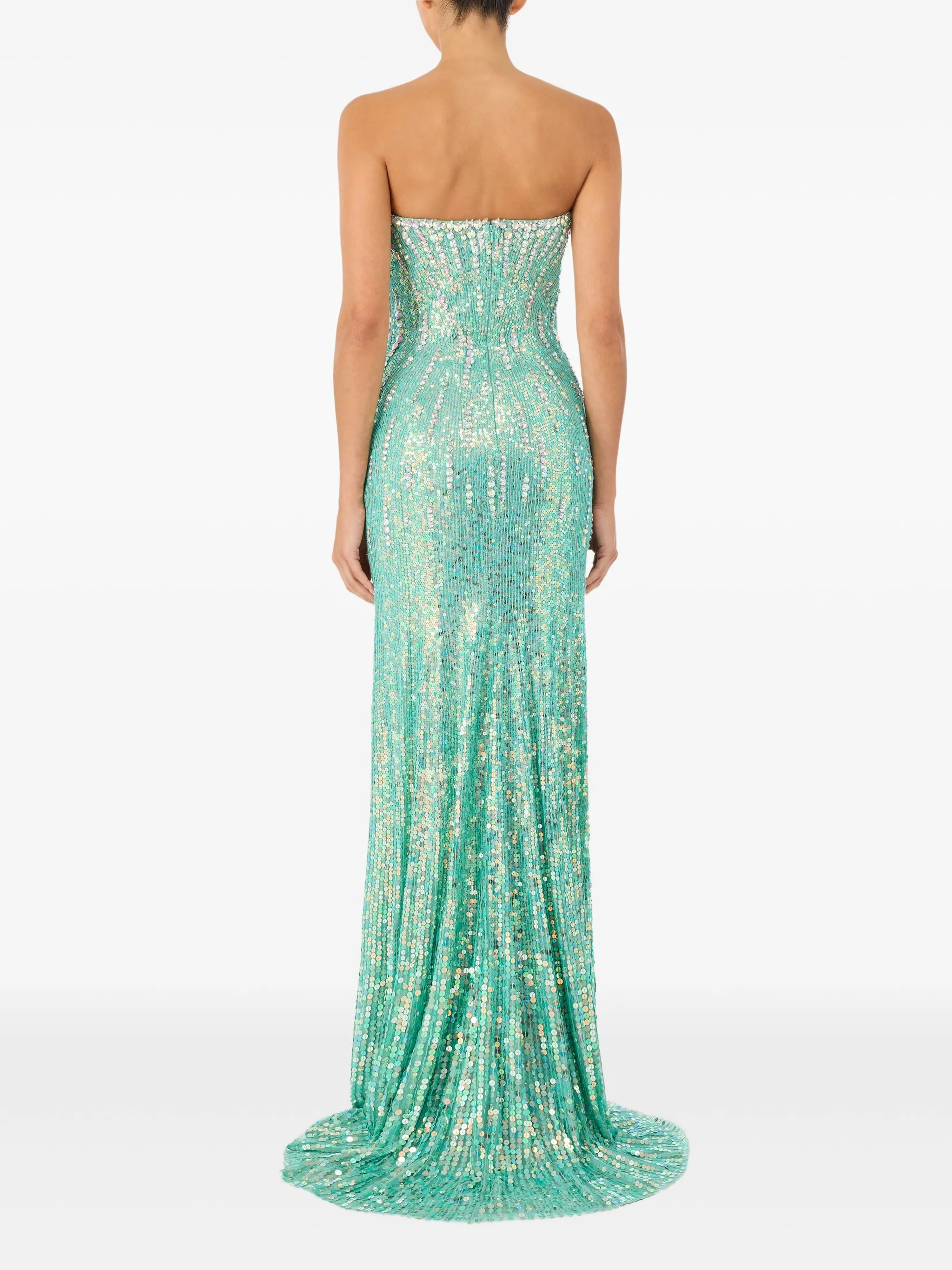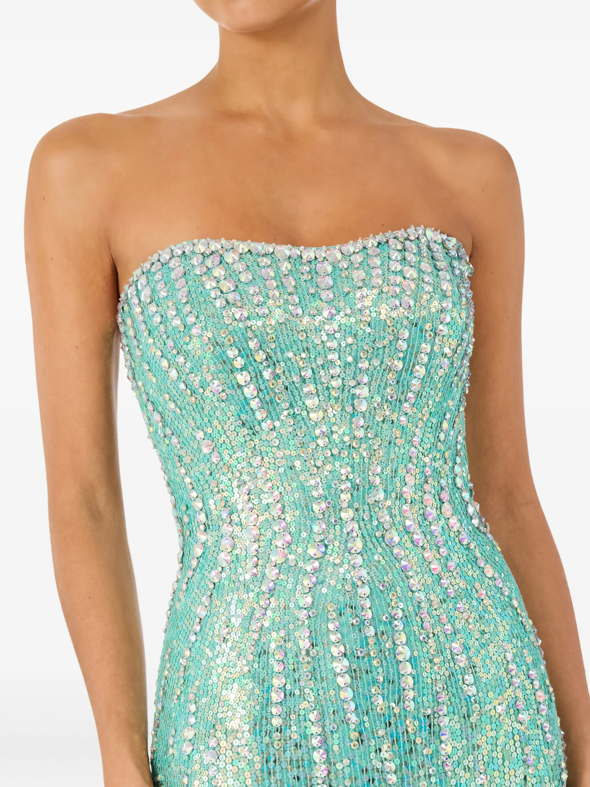 Зеленая потайная молния сзади, без бретелек, украшенная блестками
