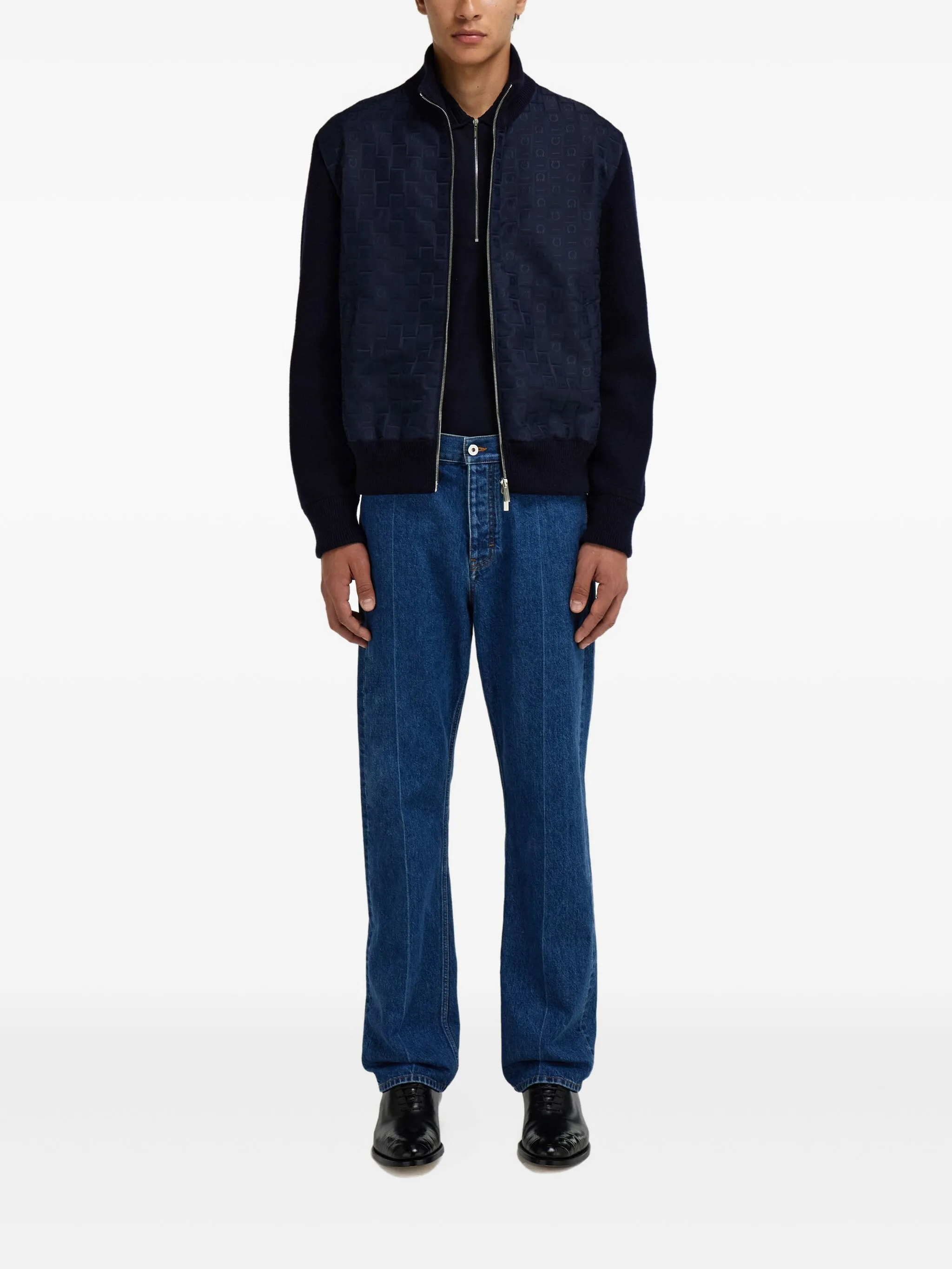 Жаккардовый бомбер с монограммой Ferragamo, синий