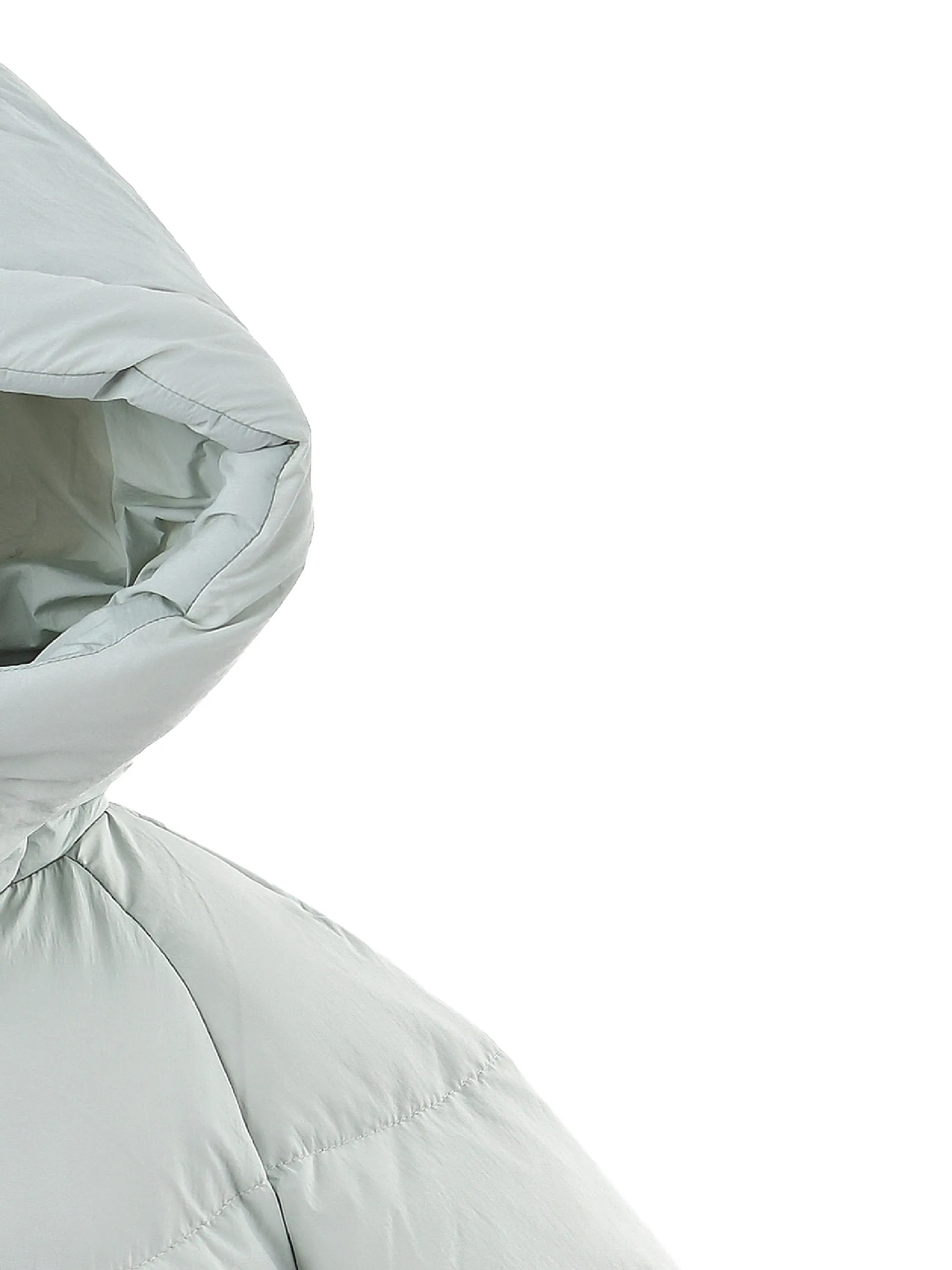 Передние карманы с помпонами, застегивающиеся на пуговицы с синим стеганым капюшоном