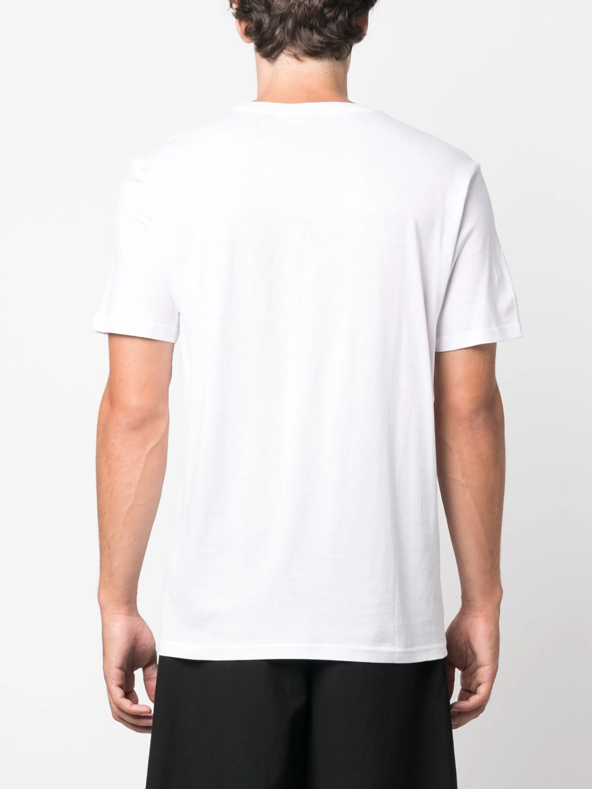 Белый, хлопок, логотип спереди, круглый вырез, короткие рукава и прямой подол.