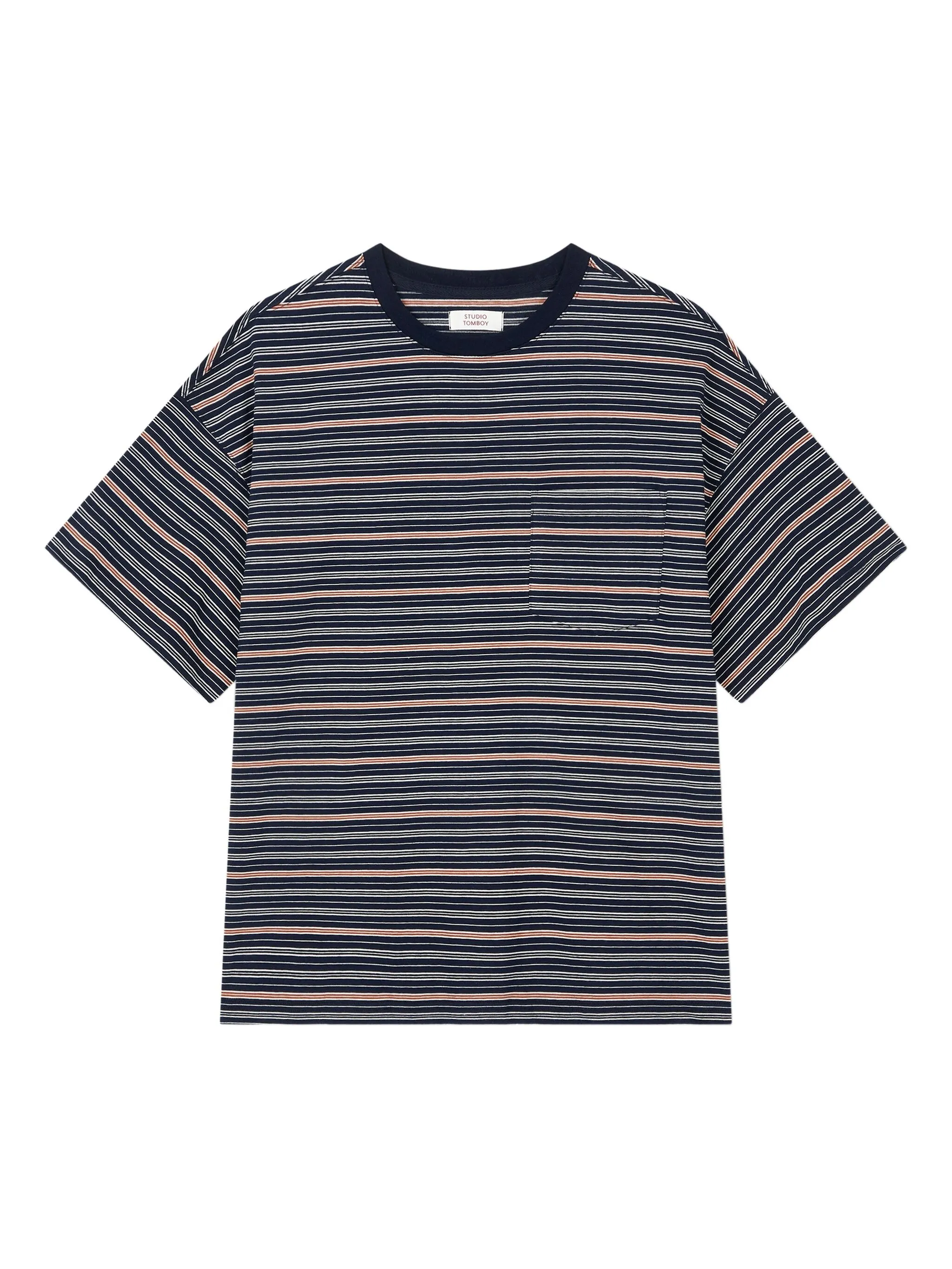 Футболка с полосатым карманом Studio Tomboy, синий