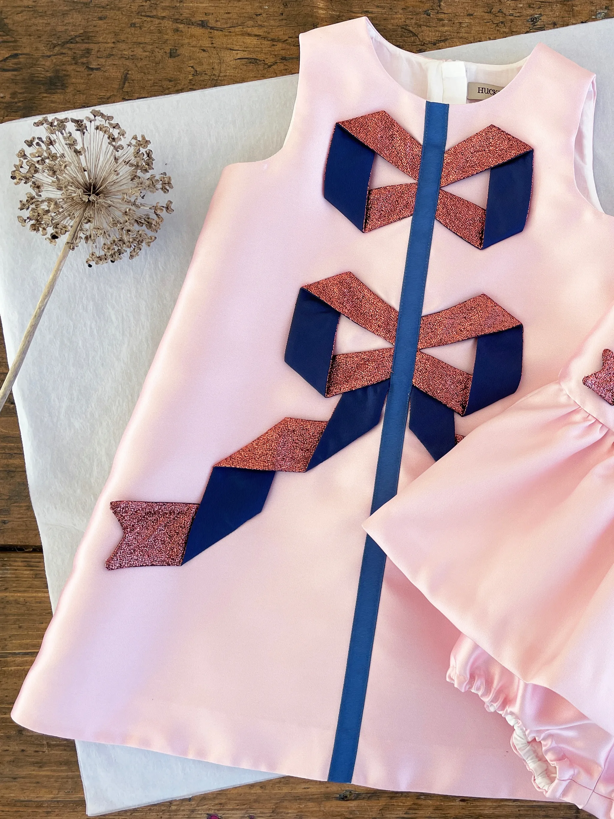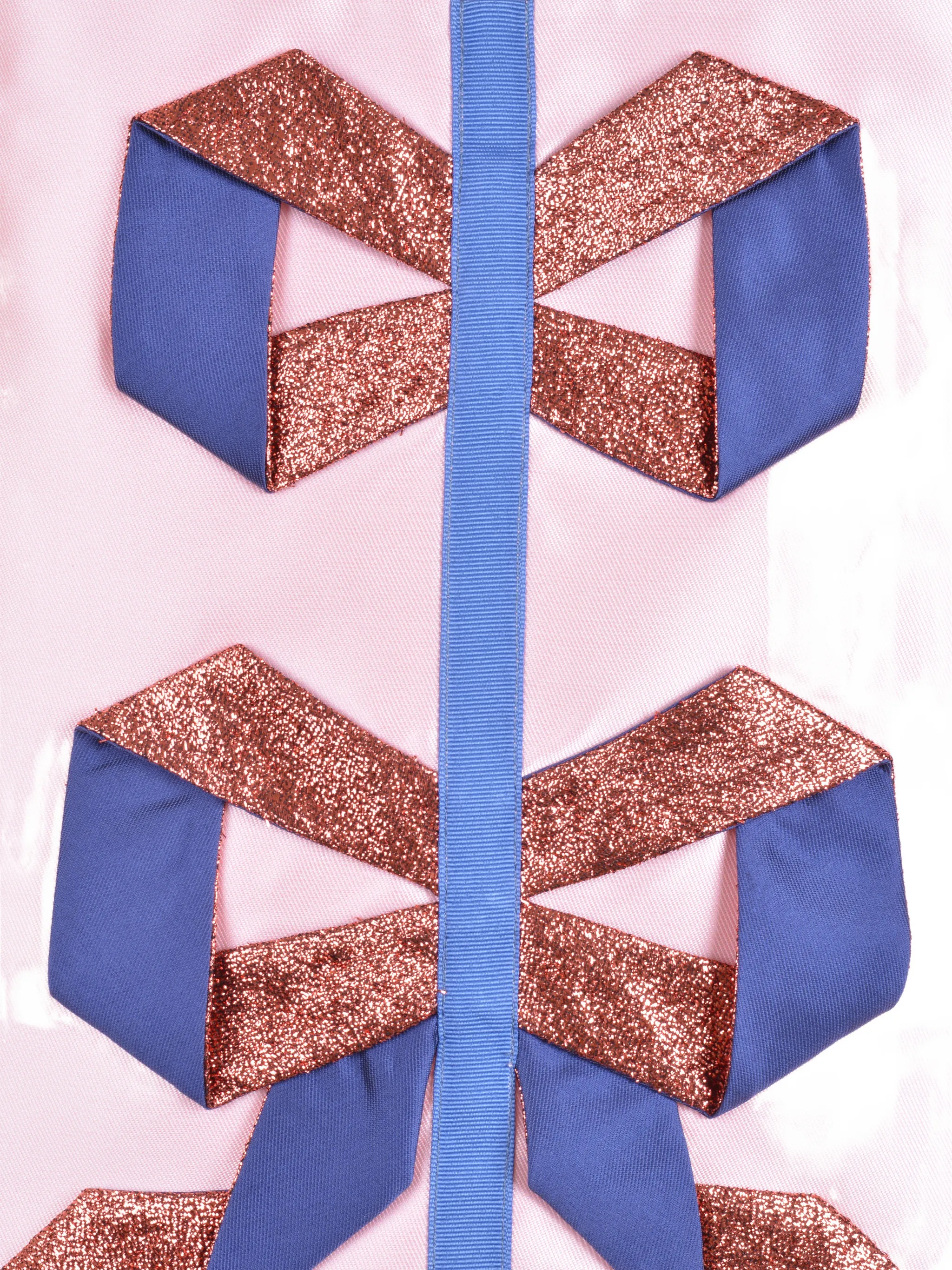 Деталь из розовой ленты, блестящая деталь, застежка на молнию, круглый вырез без рукавов
