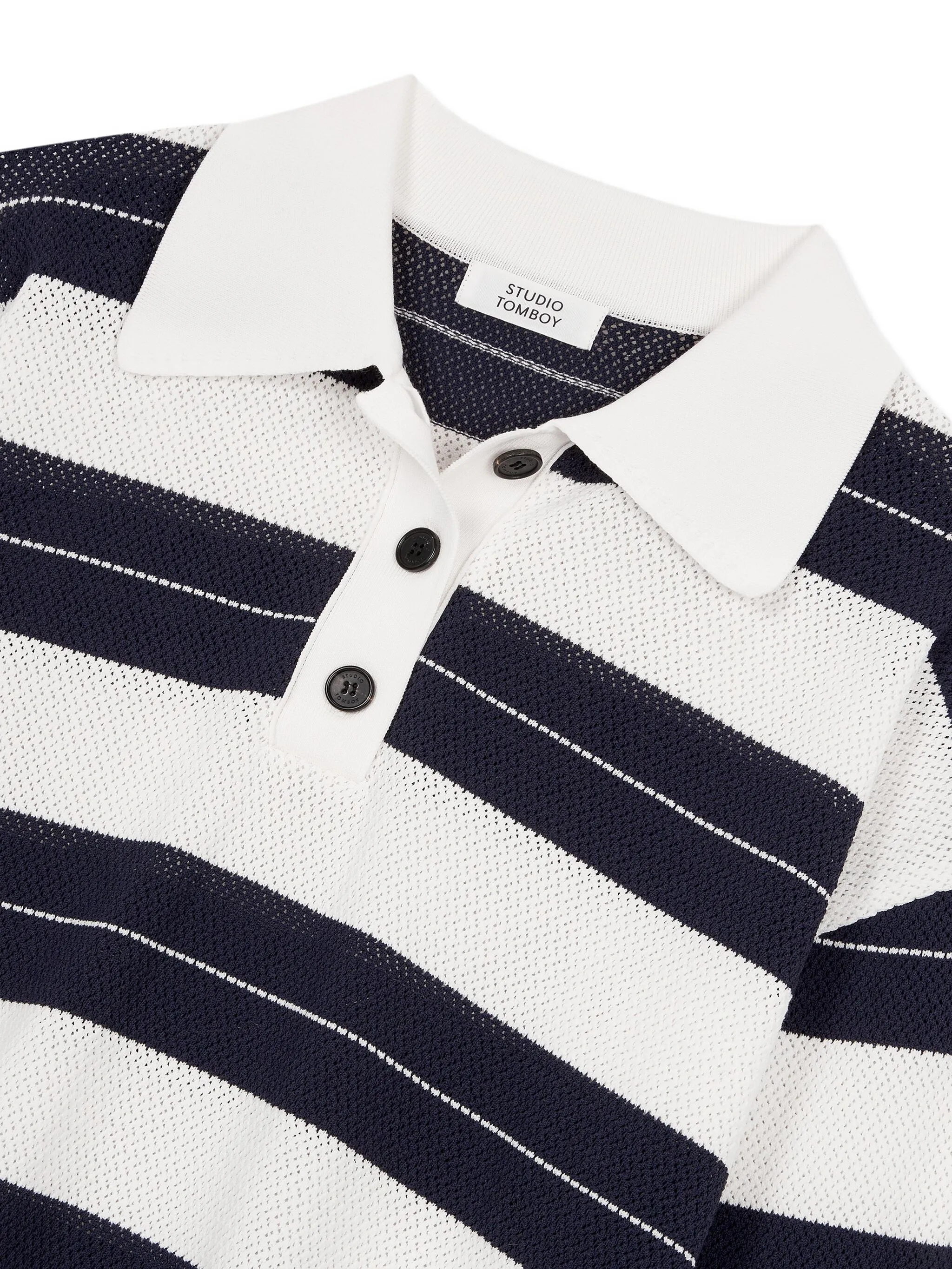 Полосатая рубашка поло с длинными рукавами Studio Tomboy, синий