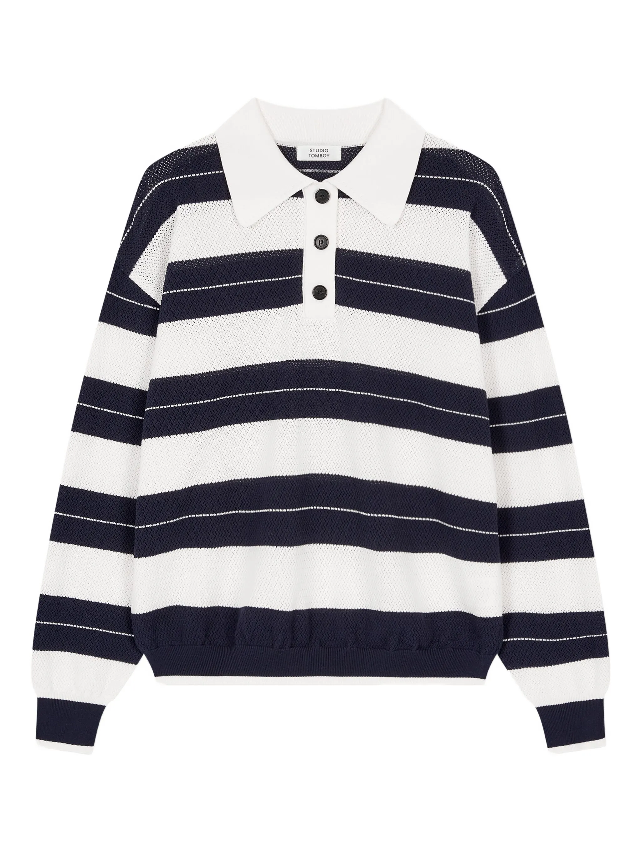 Полосатая рубашка поло с длинными рукавами Studio Tomboy, синий 23 968₽