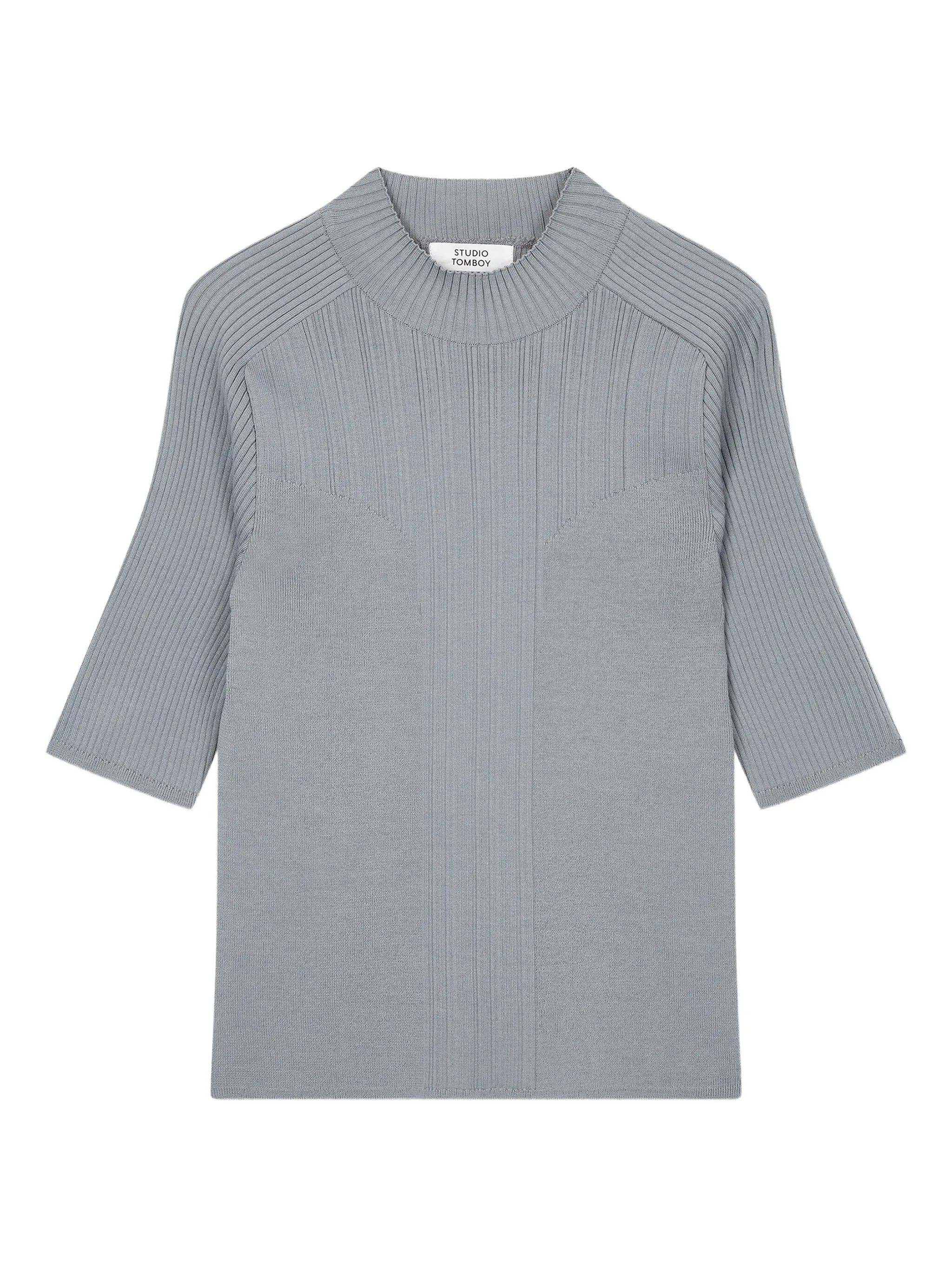 Футболка в рубчик с высоким воротником Studio Tomboy, серый
