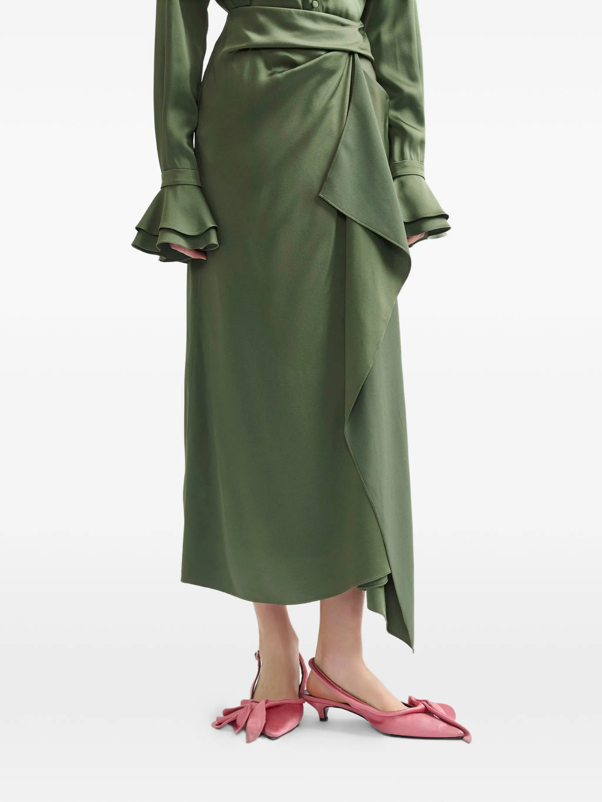 Юбка миди с драпировкой Erdem, зеленый