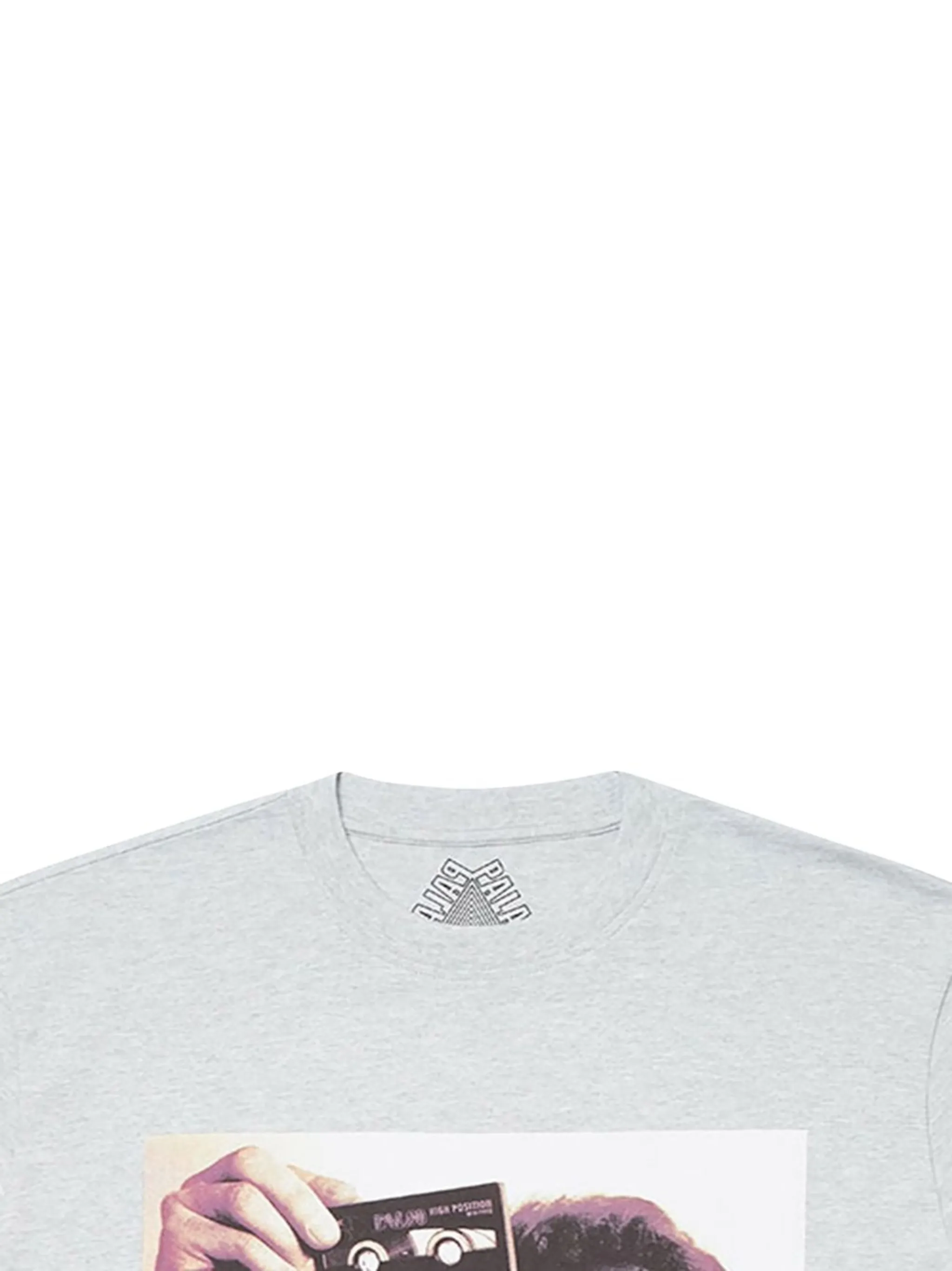 Фотопринт, круглый вырез, короткие рукава и прямой подол. Цвет: серый.