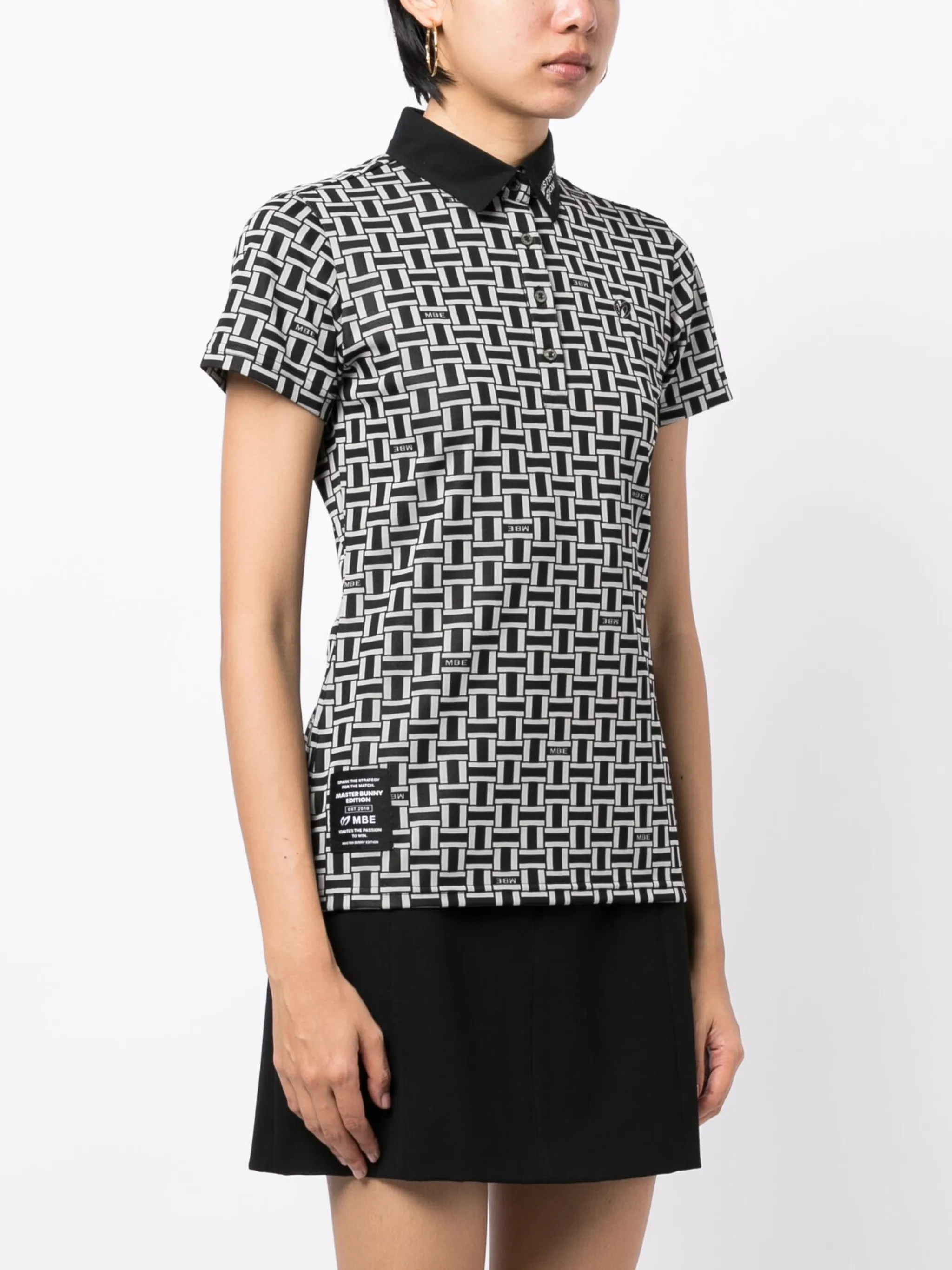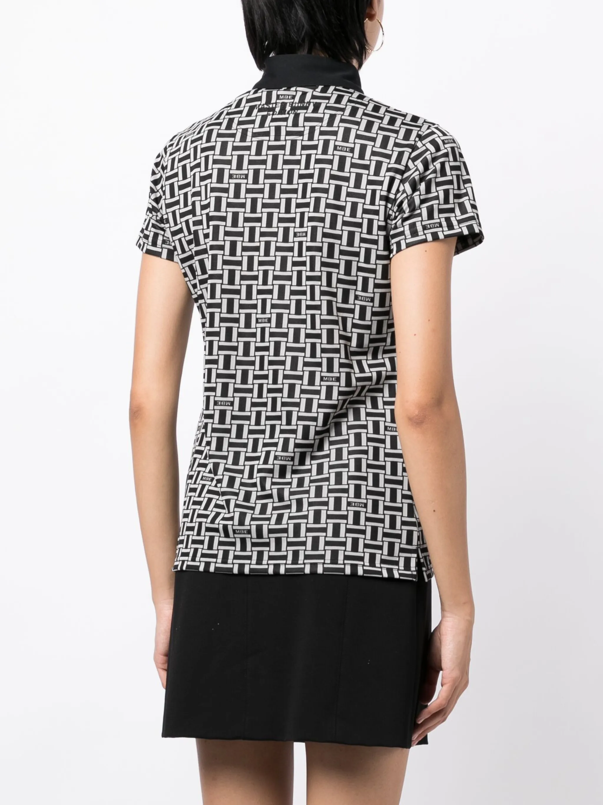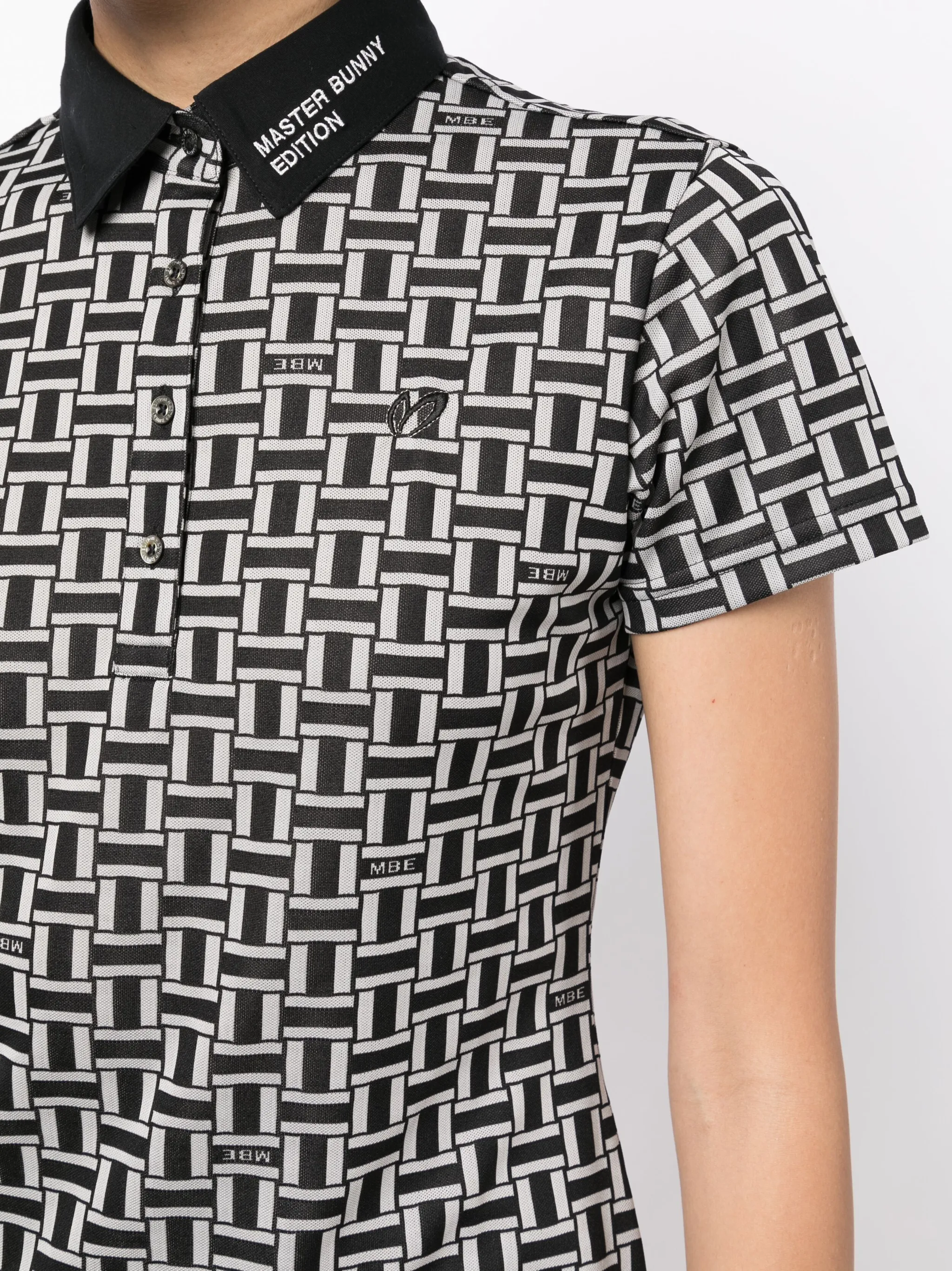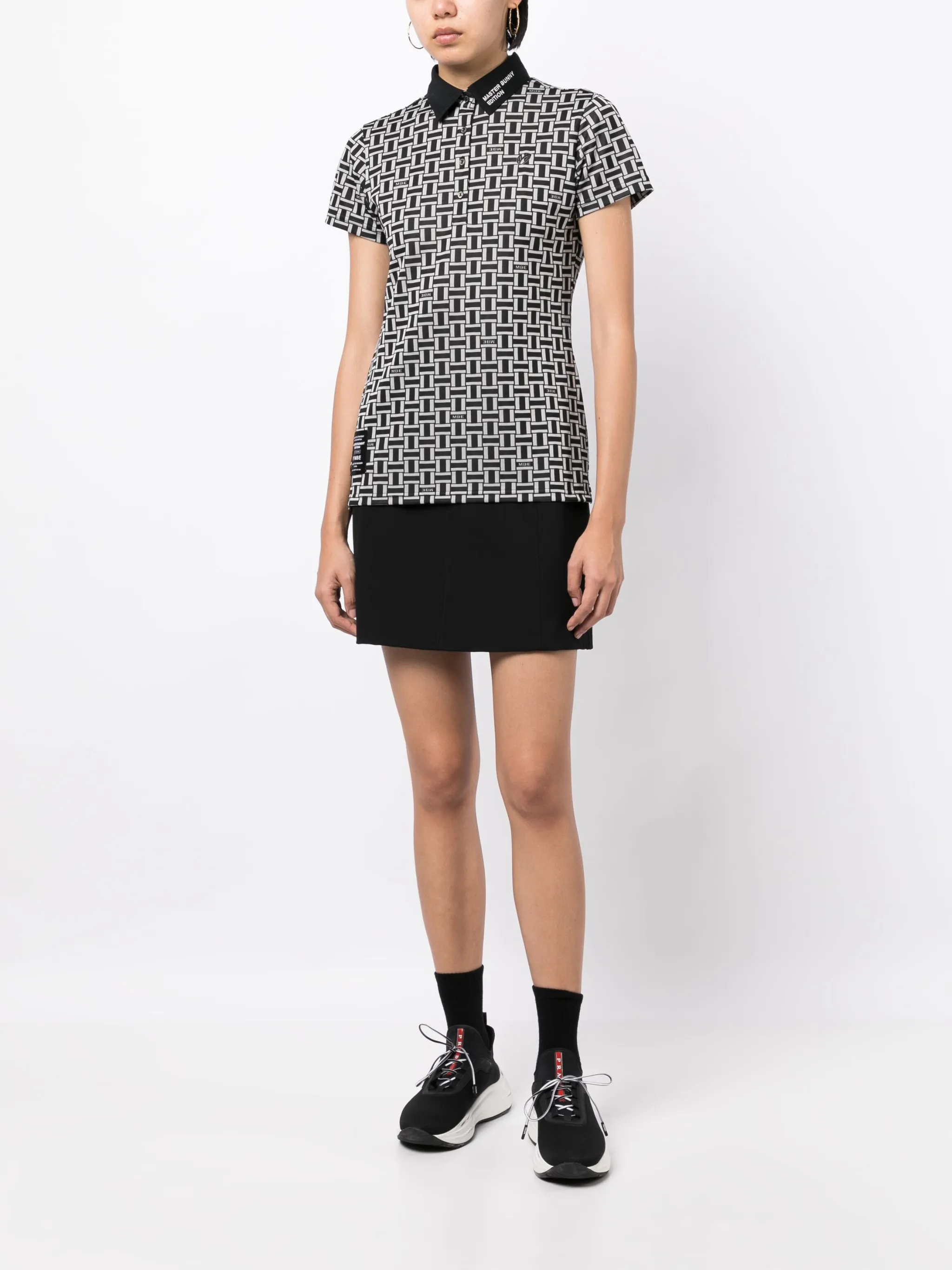 Черный/белый, нашивка с логотипом сбоку, логотип сбоку, вышитый логотип сзади, воротник поло, планка на пуговицах спереди, короткие рукава и прямой подол.
