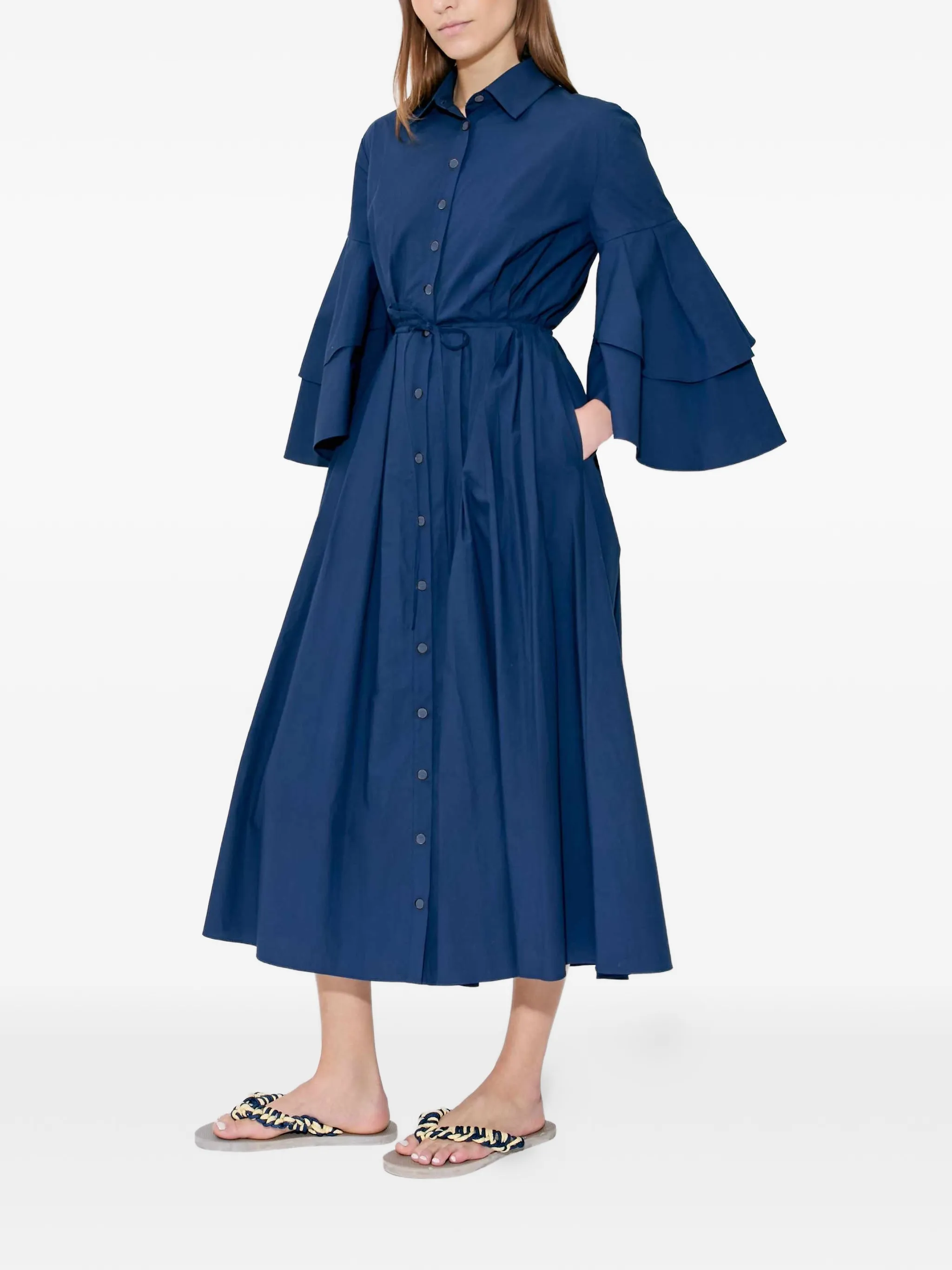 Платье миди-рубашка с оборками Fiesta Rosie Assoulin, синий 44 282₽