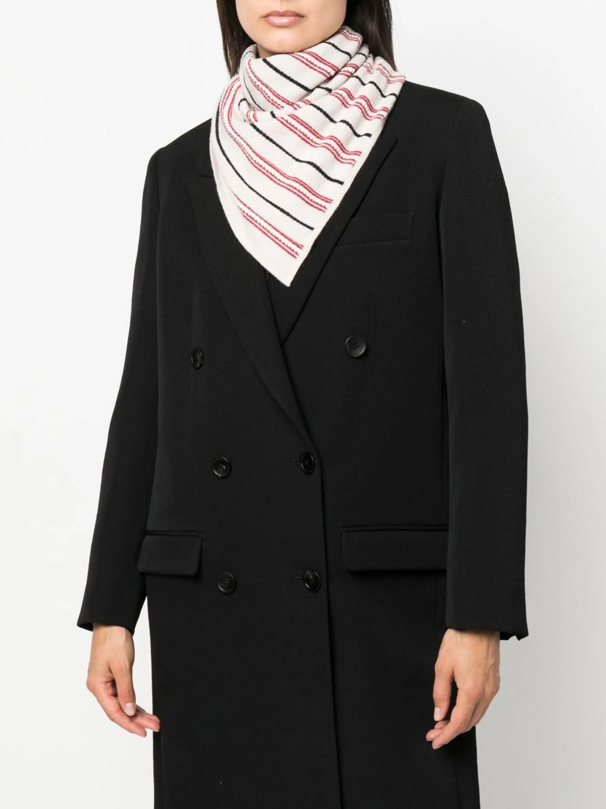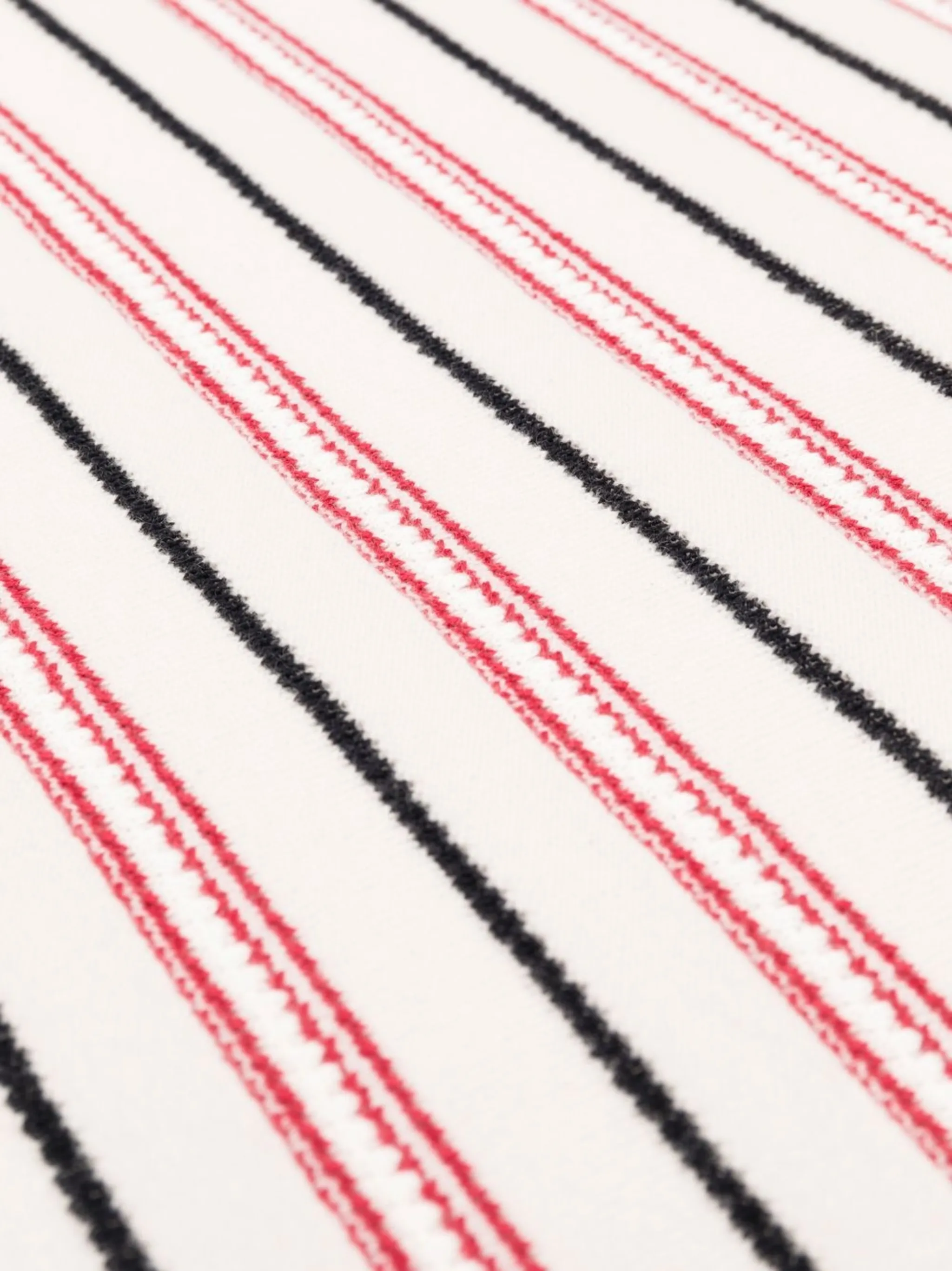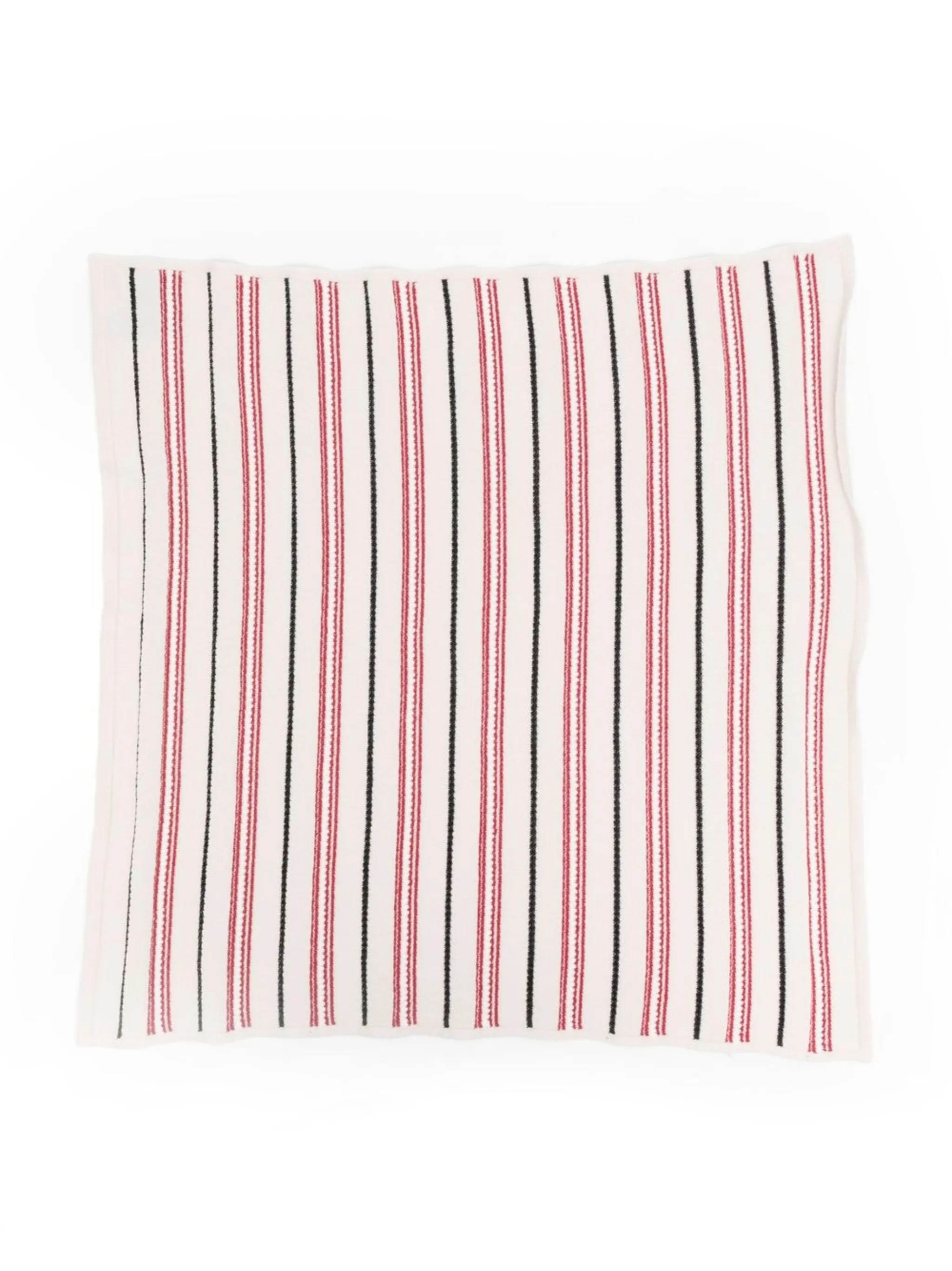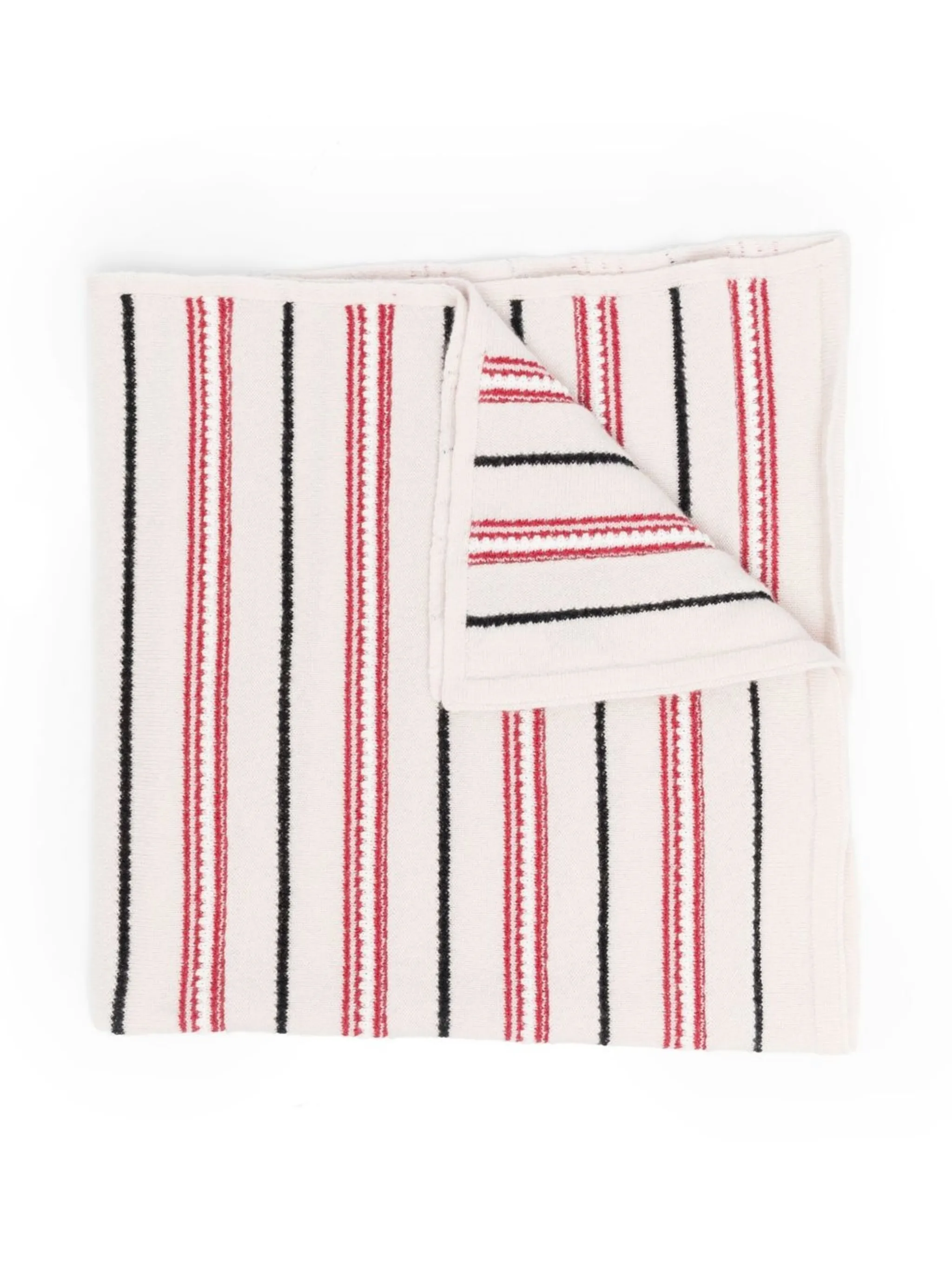 Кремовый, бордовый, черный, смесь хлопка и кашемира, трикотажный материал, узор в полоску и вязаные края в рубчик.