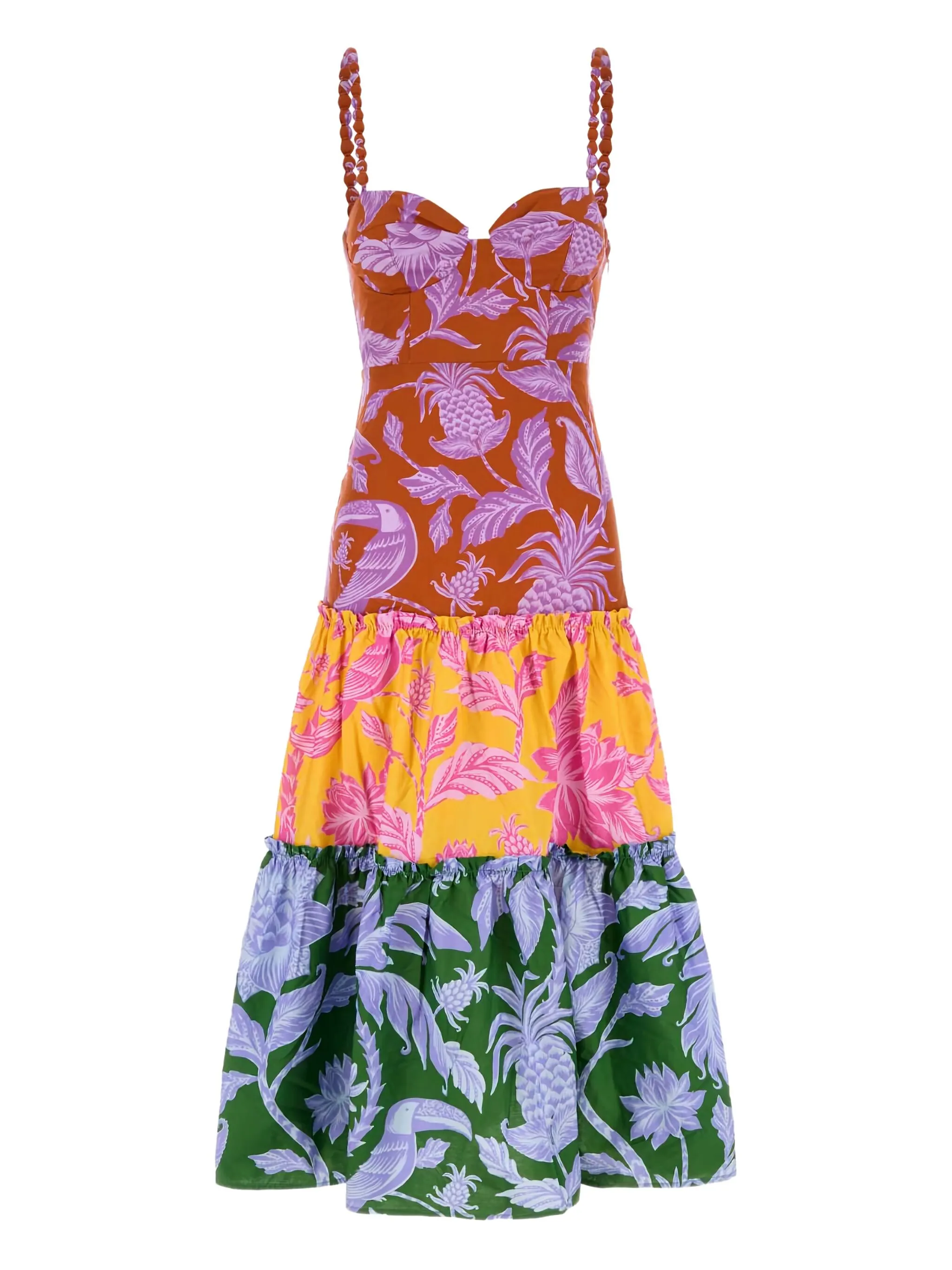 Ярусное платье миди с принтом Farm Rio, розовый 61 471₽