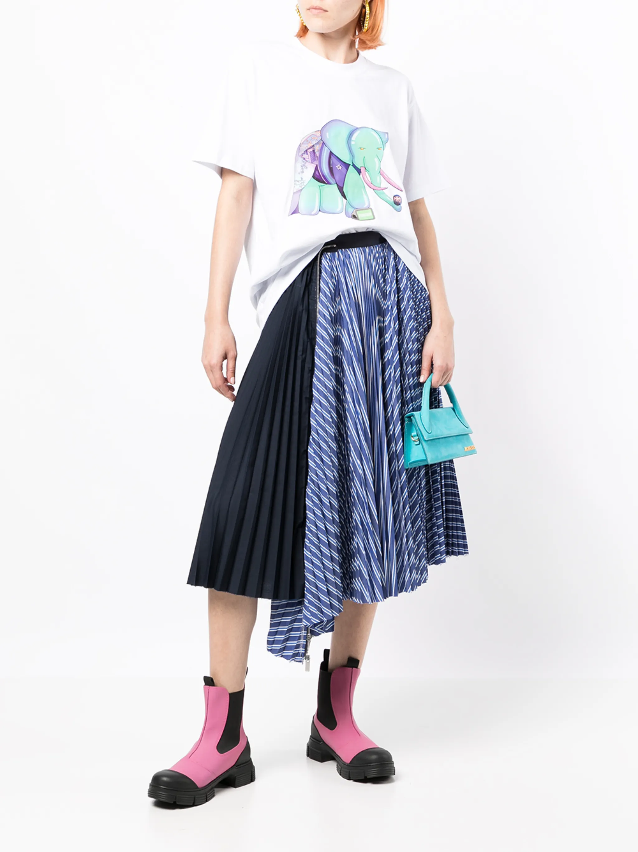 Принт на груди, принт с надписью сзади, круглый вырез и короткие рукава. Цвет: белый.