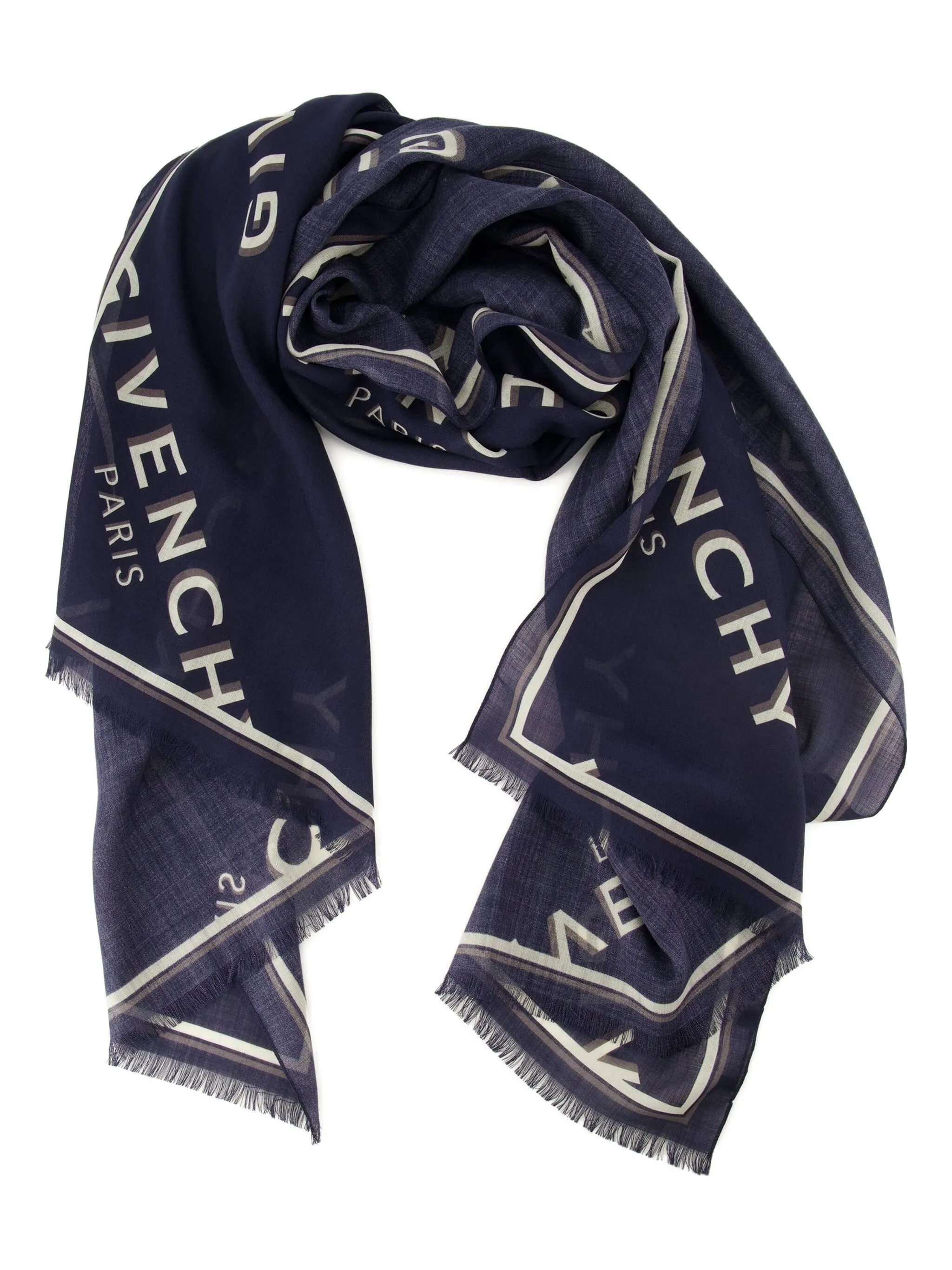 Шарф с бахромой и монограммой Givenchy, синий 43 737₽