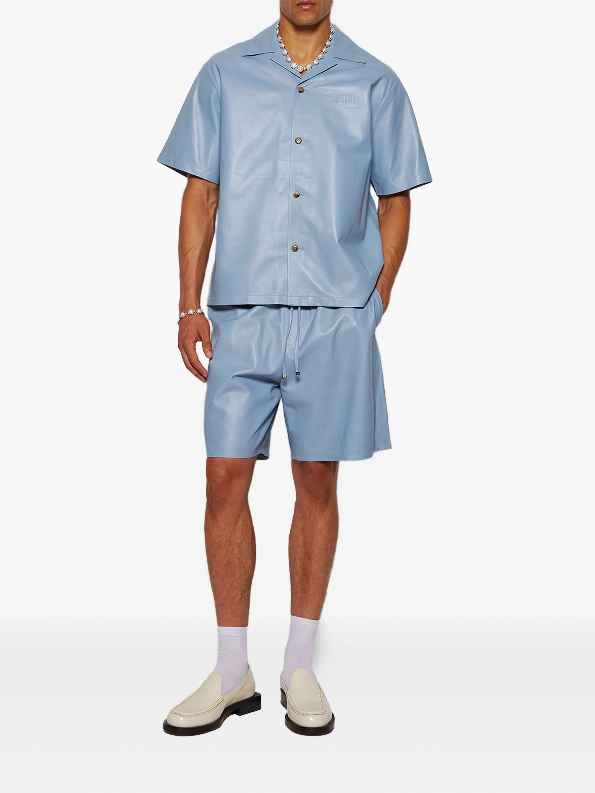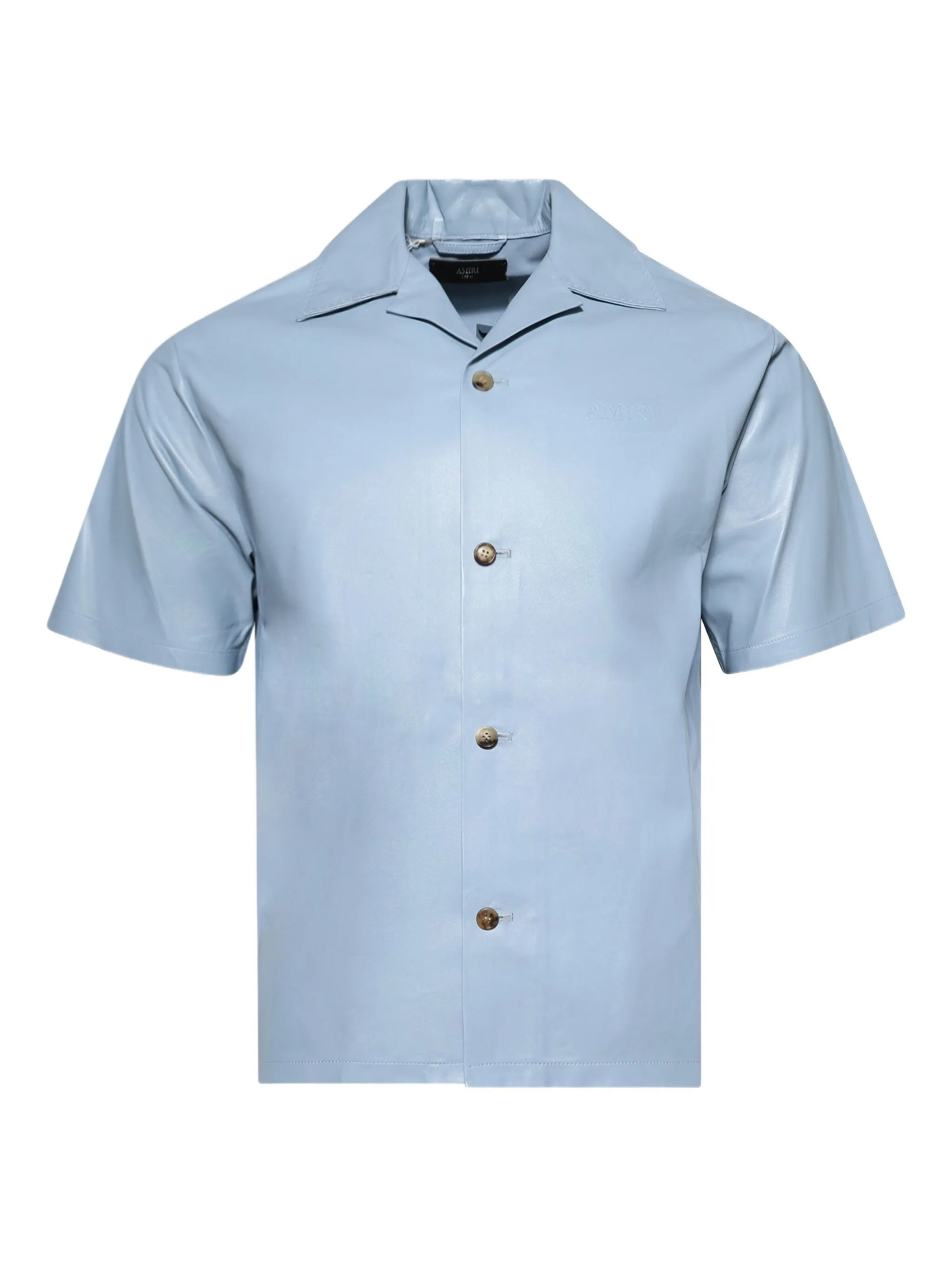 Кожаная рубашка с короткими рукавами Amiri, синий