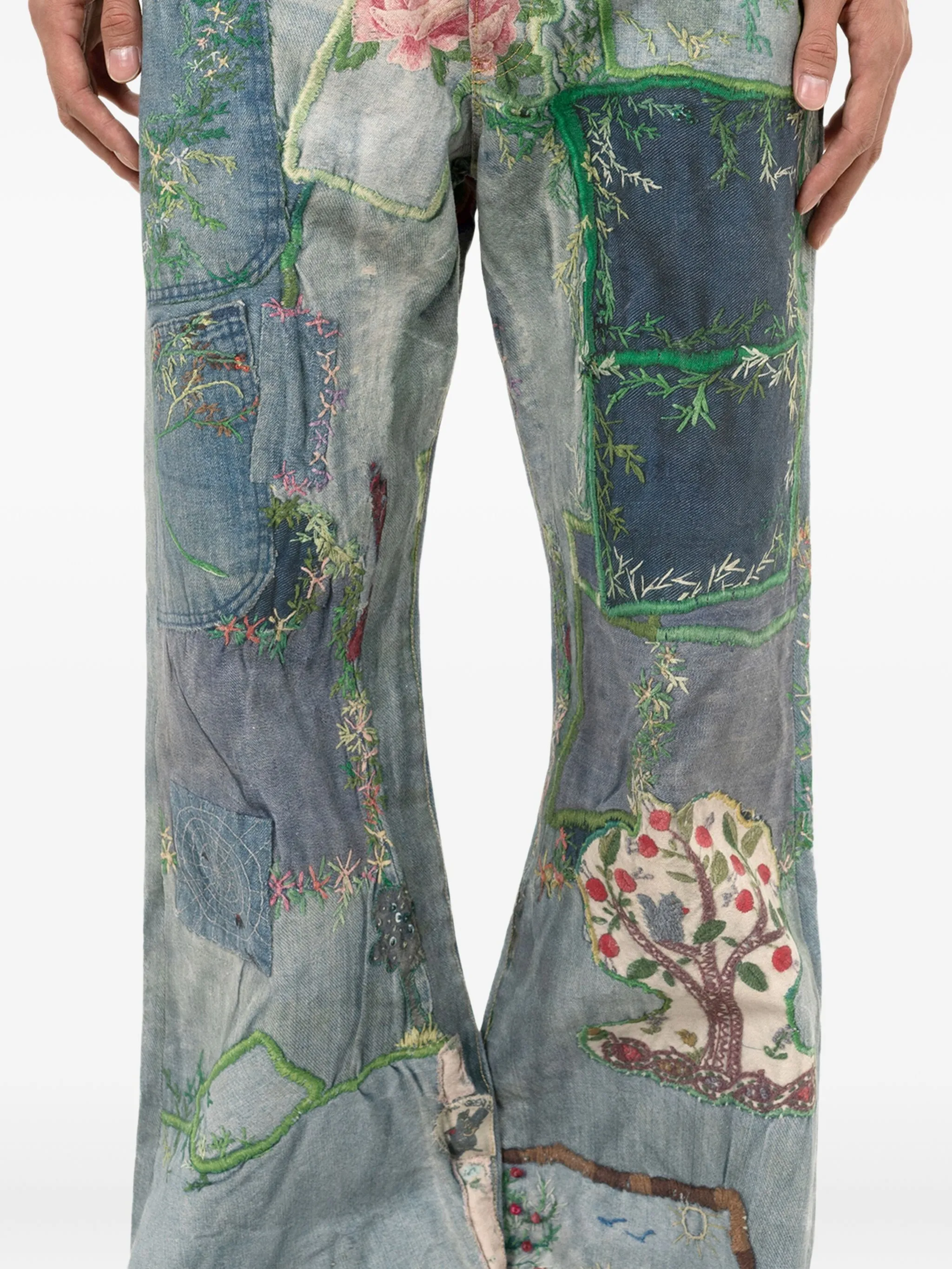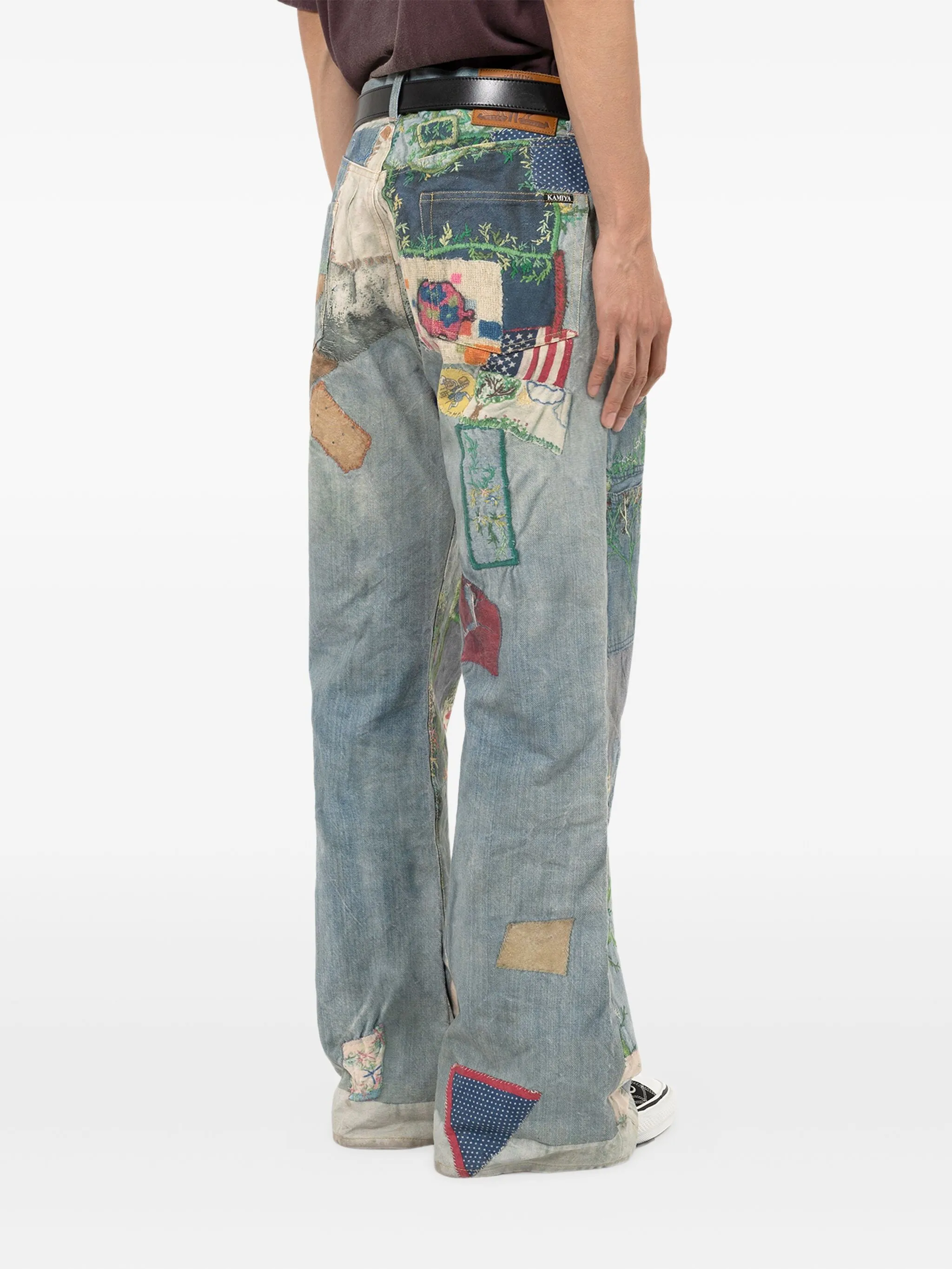 Джинсы в технике пэчворк с эффектом тромплей Kamiya, синий