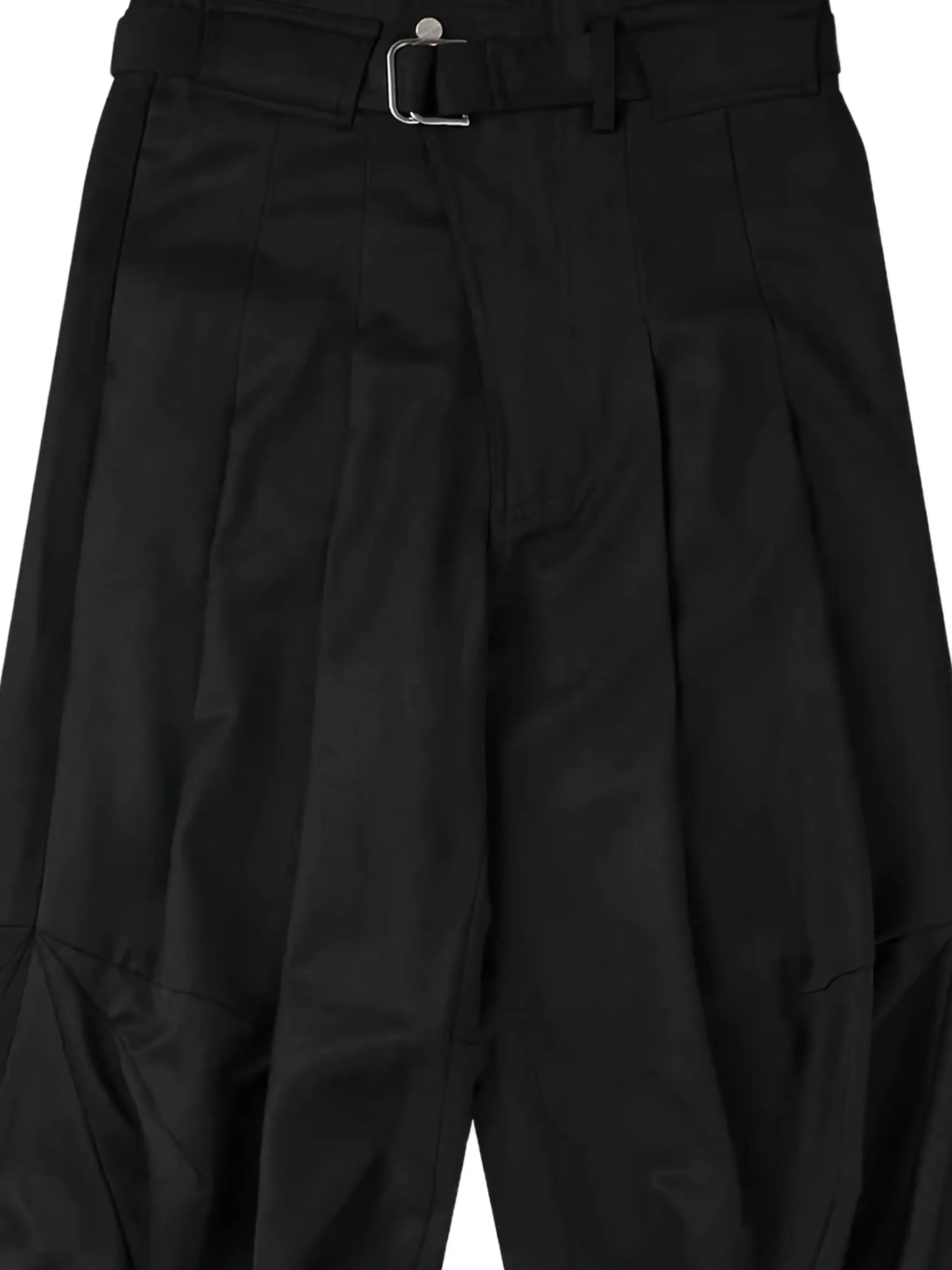Широкие штанины со складками, отделанными черными панелями