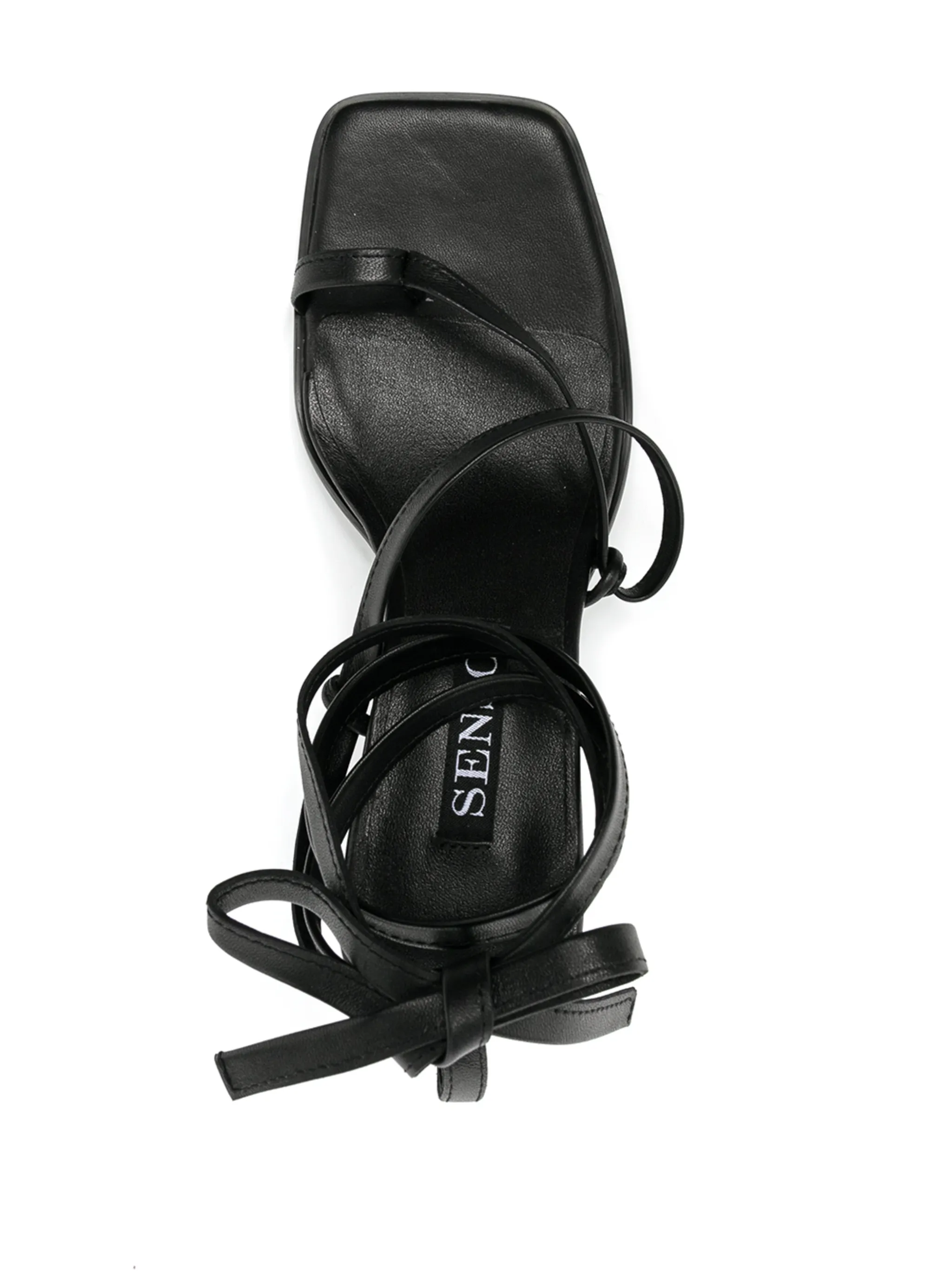 Модель без застежки, открытый носок, перекрестные ремешки, декор в виде узла, кожаная стелька с логотипом и плоская резиновая подошва. Цвет: черный.