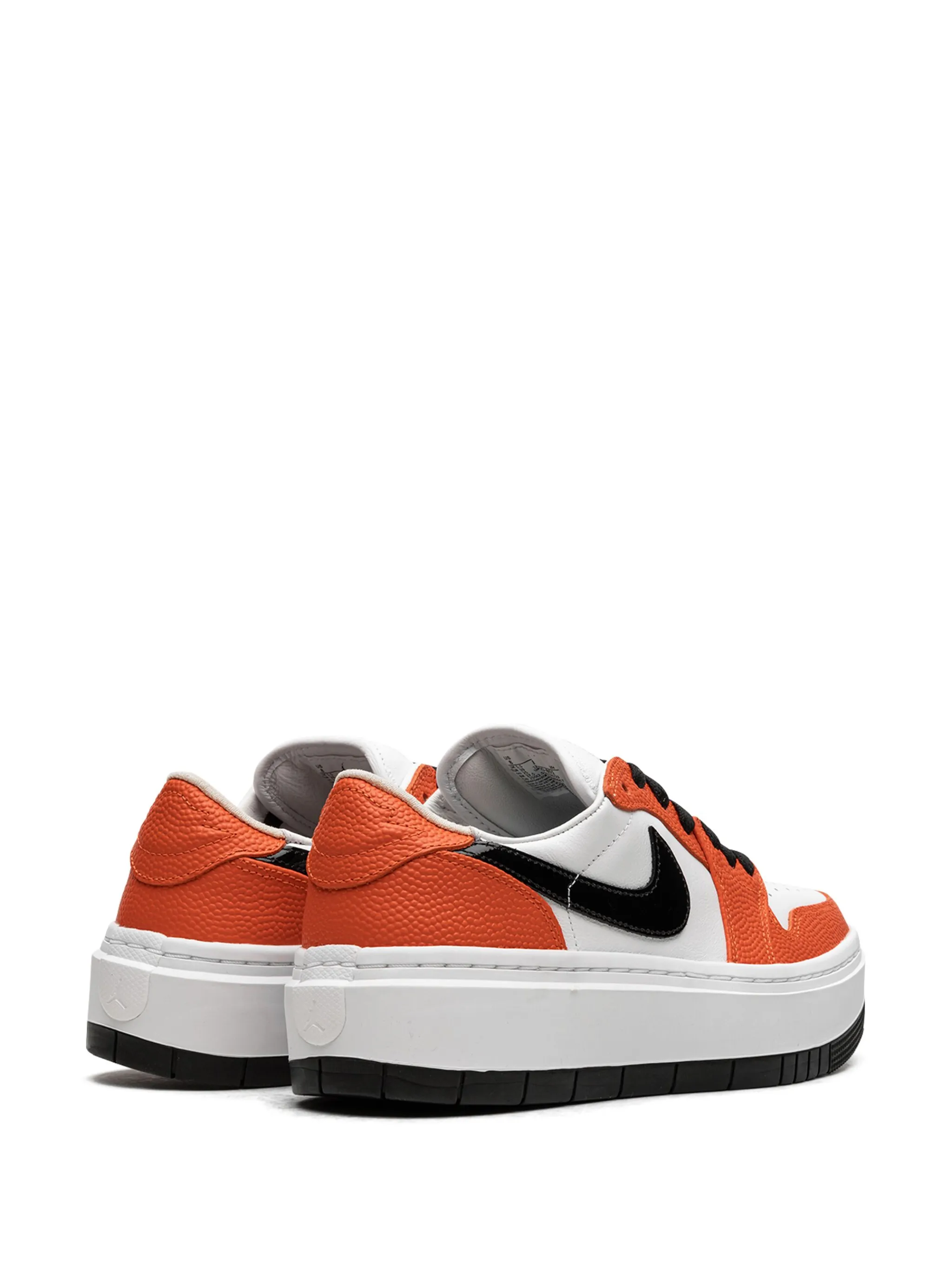 Черный, белый, оранжевый, кожа, логотип Nike Swoosh, логотип Air Jordan Wings, контрастные вставки, закругленный носок, шнуровка спереди, стелька с логотипом и подошва на платформе.