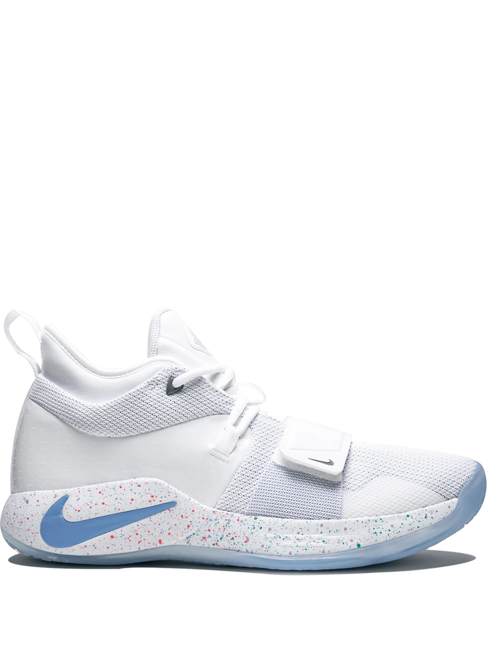 Кроссовки PG 2.5 Playstation от Nike (Найки). Верх в сетку, петля для подтягивания сзади, шнуровка спереди, застежка на липучке и плоская резиновая подошва. Цвет: белый.