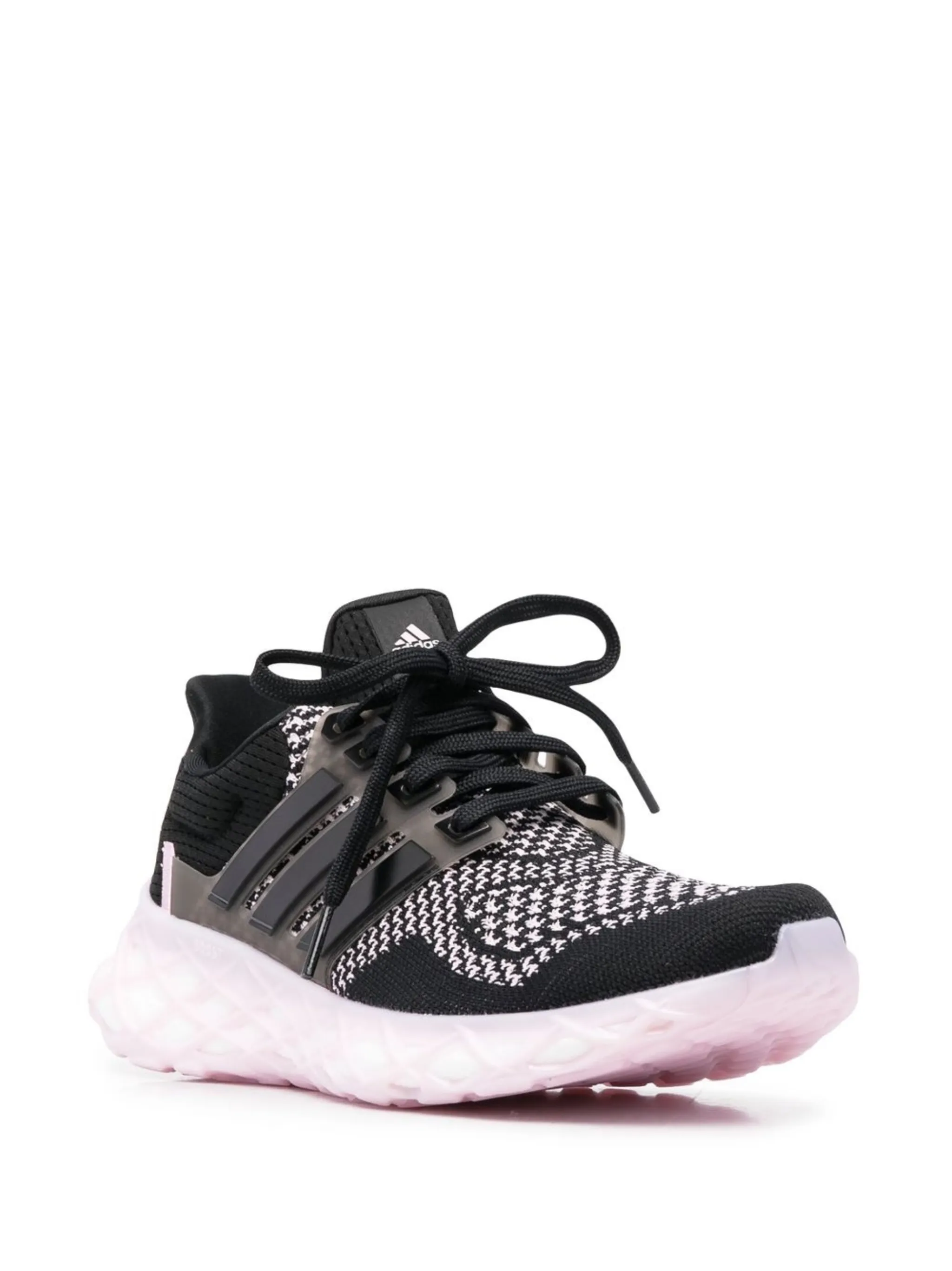 Черный, светло-розовый, знаковый логотип 3-Stripes, язычок с логотипом, закругленный носок, шнуровка спереди, стелька с логотипом и резиновая подошва.