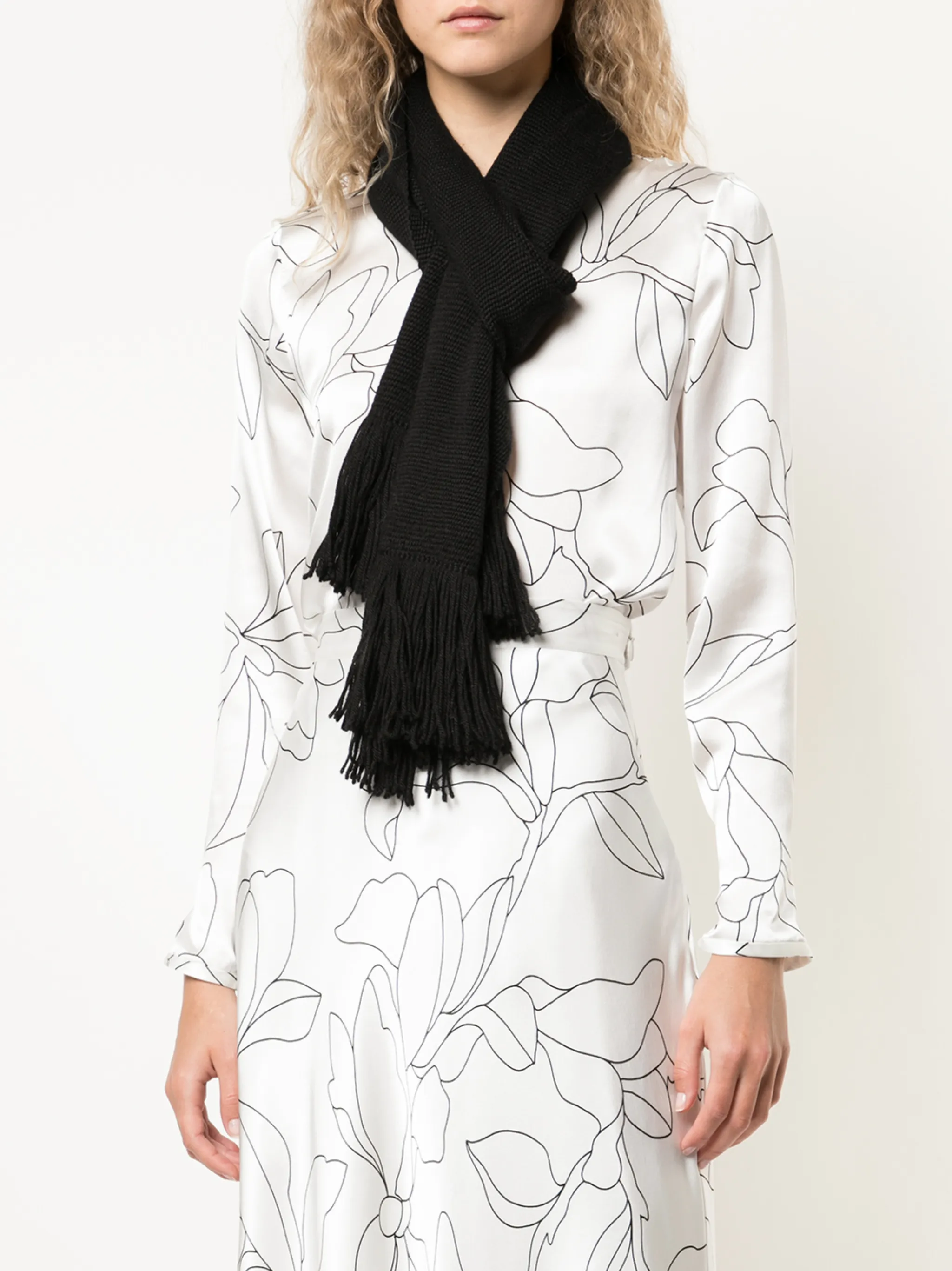 Шарф с бахромой от VOZ. Вязаная модель и ребристая фактура.